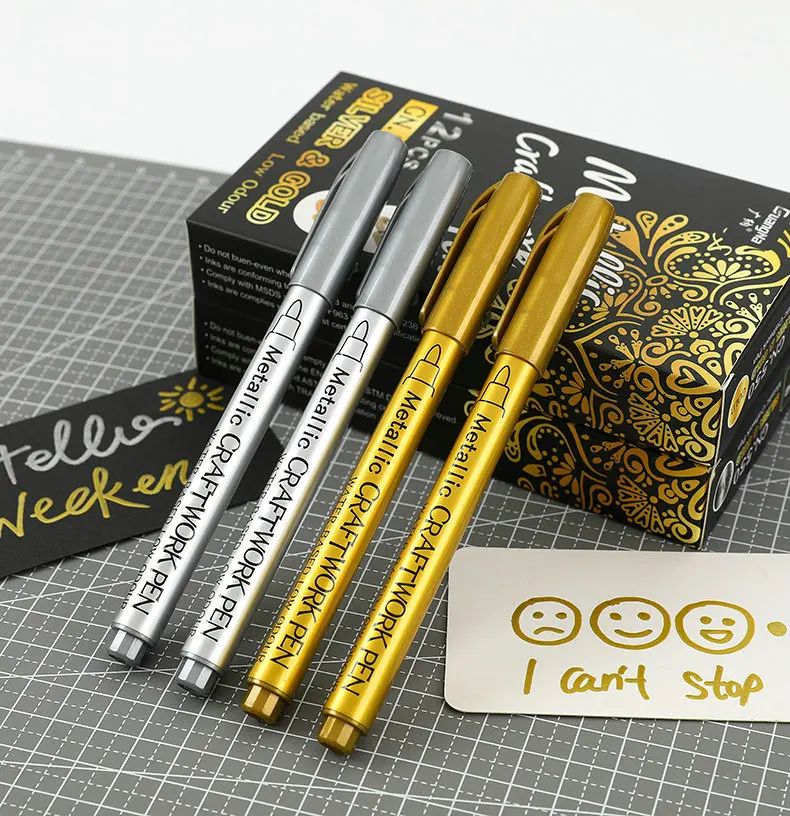 High quality whiteboard craftwork diy painting pen card drawing signature metallic silver gold water based indelible marker pens