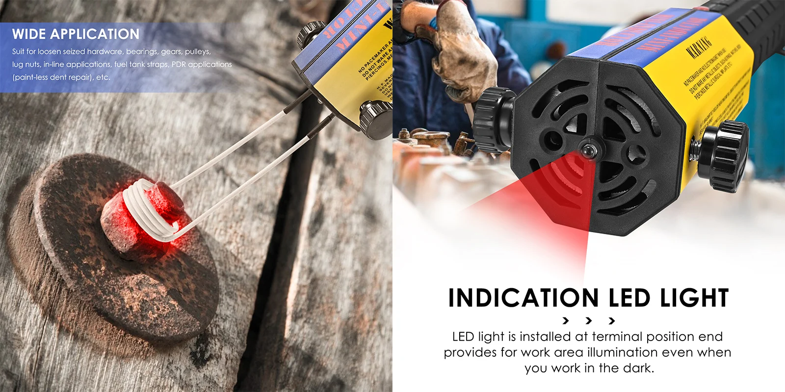 The Mini-Inductor uses electromagnetic fields for the heating of ferrous and some non-ferrous metals without the danger of an open flame. This flameless heat system is also faster, smaller, and more precise than oxy-acetylene system.