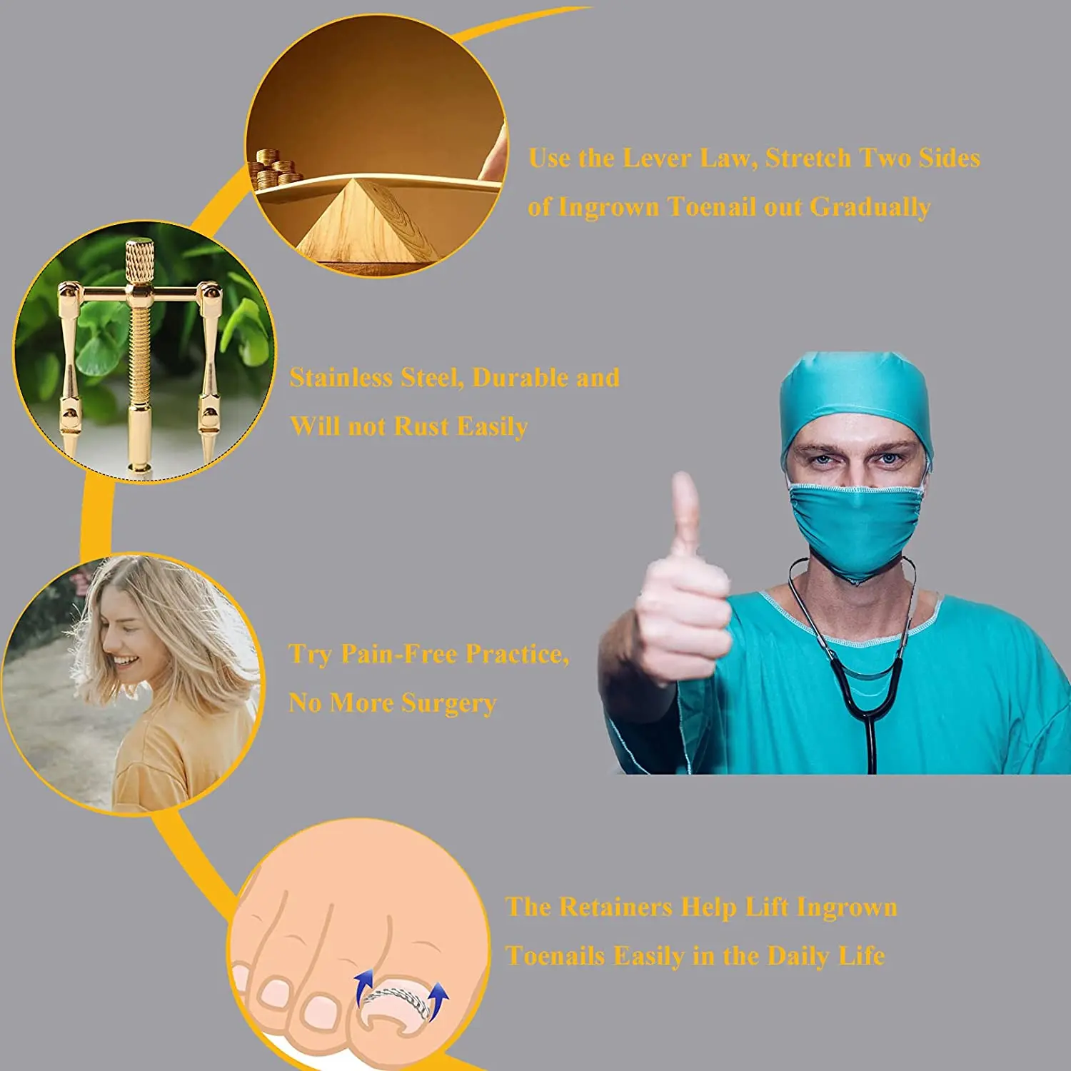 ✅SIMPLE DESIGN EASY USING WITH BIG FUNCTION --The ingrown toenail remover is an absolutely effective product developed by team of professional podiatrist, is designed with the aim of pain and discomfort free ingrown toenail treatment.✅Simple and effective--You'd better do it just before sleeping, normally take the correction every 5-15 days,Normally use 5 to 20 minutes one day for 2 to 4 weeks, your nail problems will be sloved.