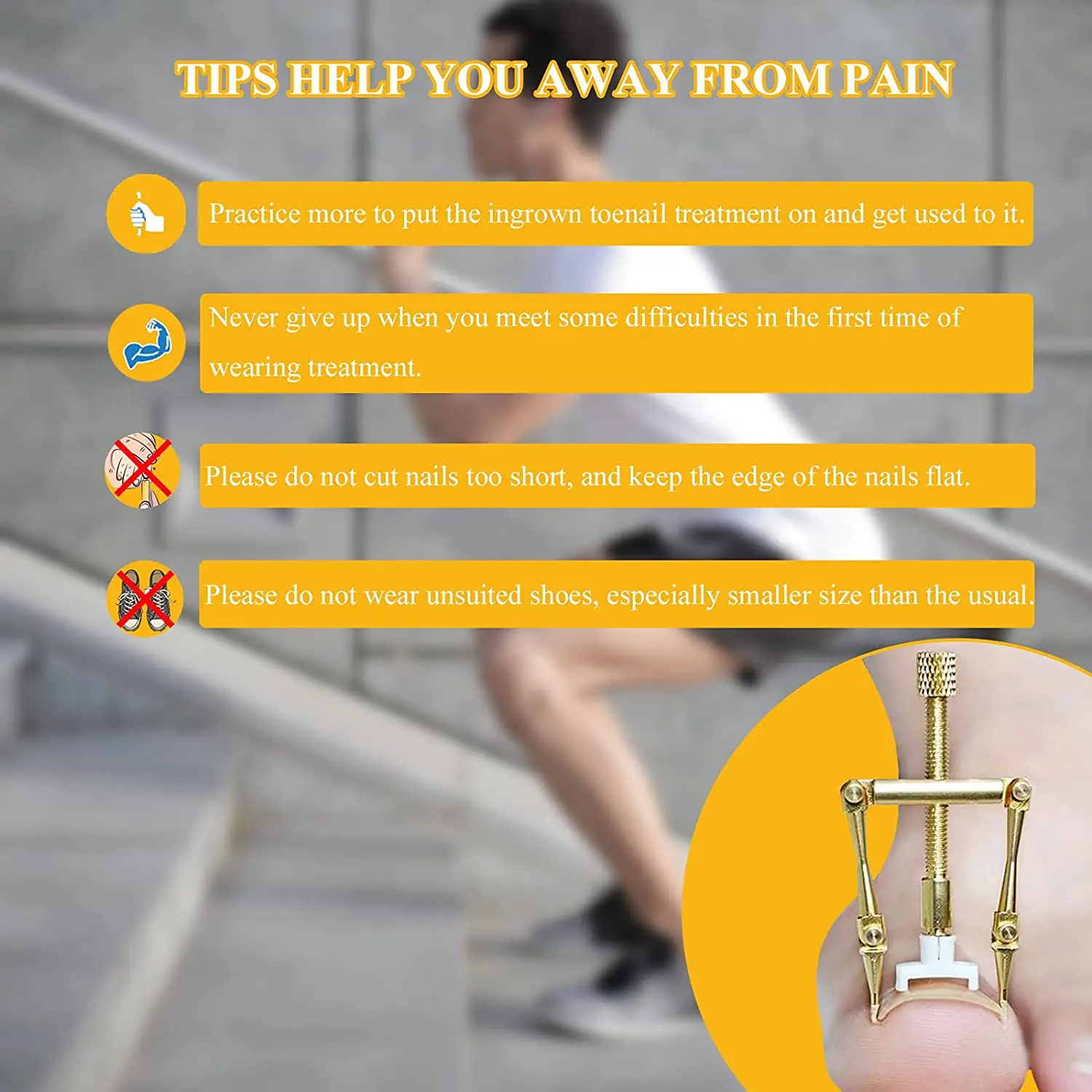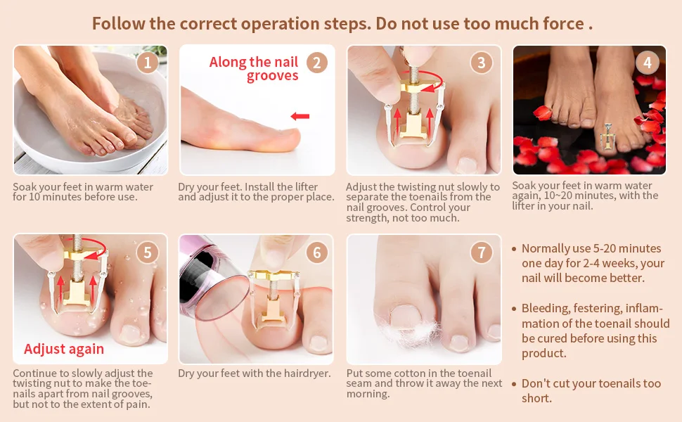 ✅ RELIEFY YOURSELF-- You don’t need special knowledge or skills to use this ingrown nail tool. It is portable, convenient to operate and our instructions will guide you through the whole process.Unscrew ,place,then as you turn screw,the sides lift up ,don't forget to soak nail first to soften it.