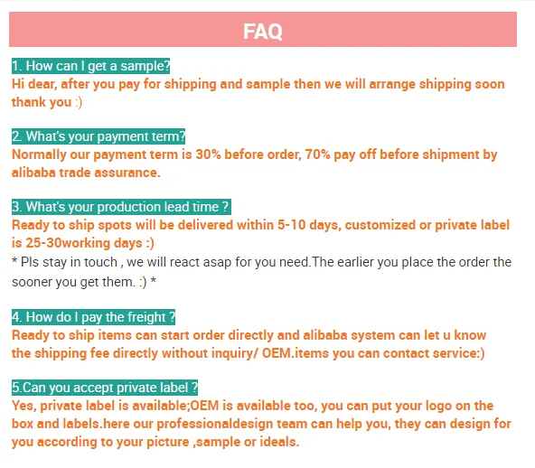 Service | OEM/ODM, Private Label, LOGO, Packaging customization.Purchase of raw materials, Transportation solutions. | ||||||