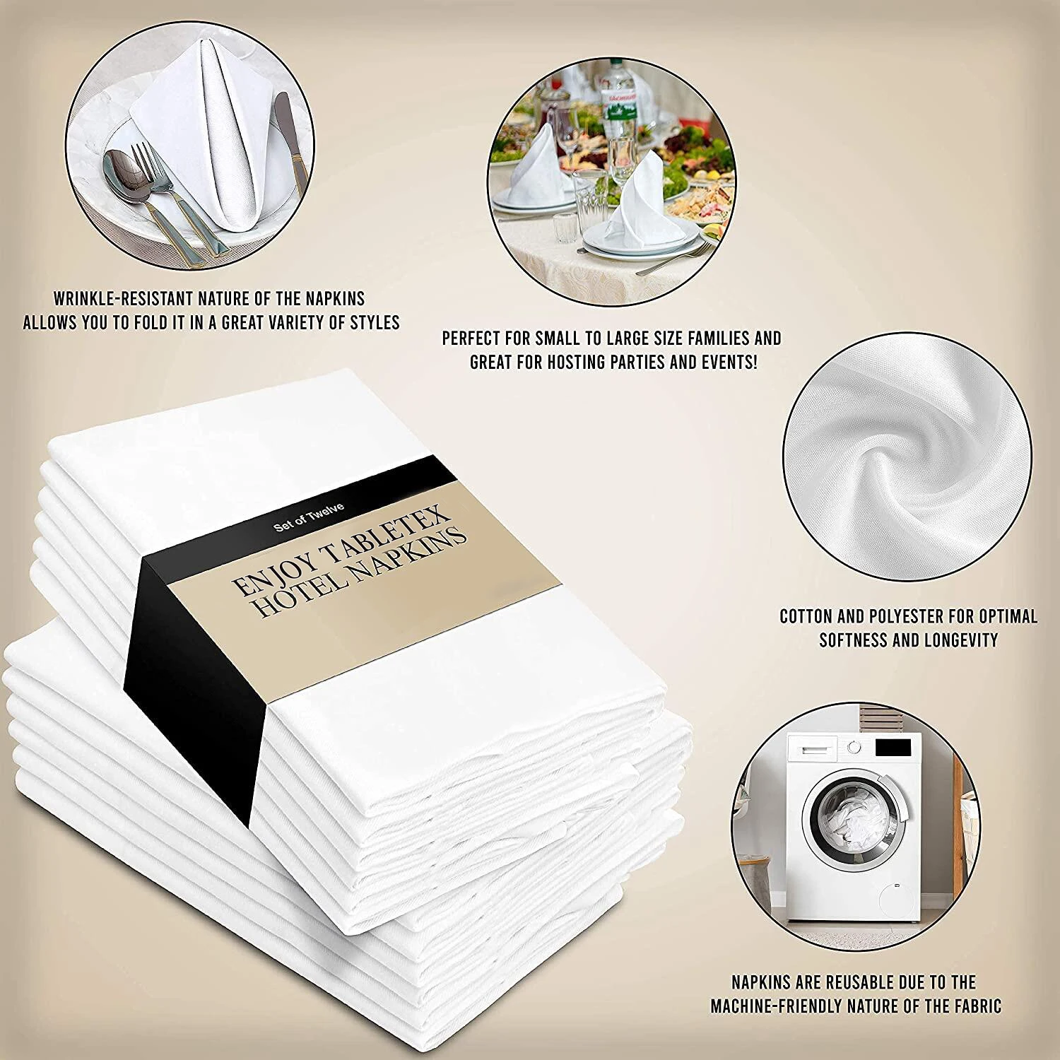 SIZE | With the perfect size of 45cm*45cm, anyone can handle these napkins with ease! |