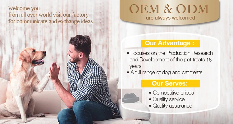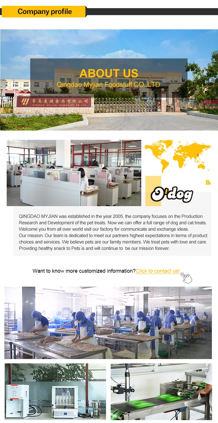 A1:We are a factory. We are a pet snack manufacturer withmore than 16 years experience in this field.Q2:How can I get some samples?