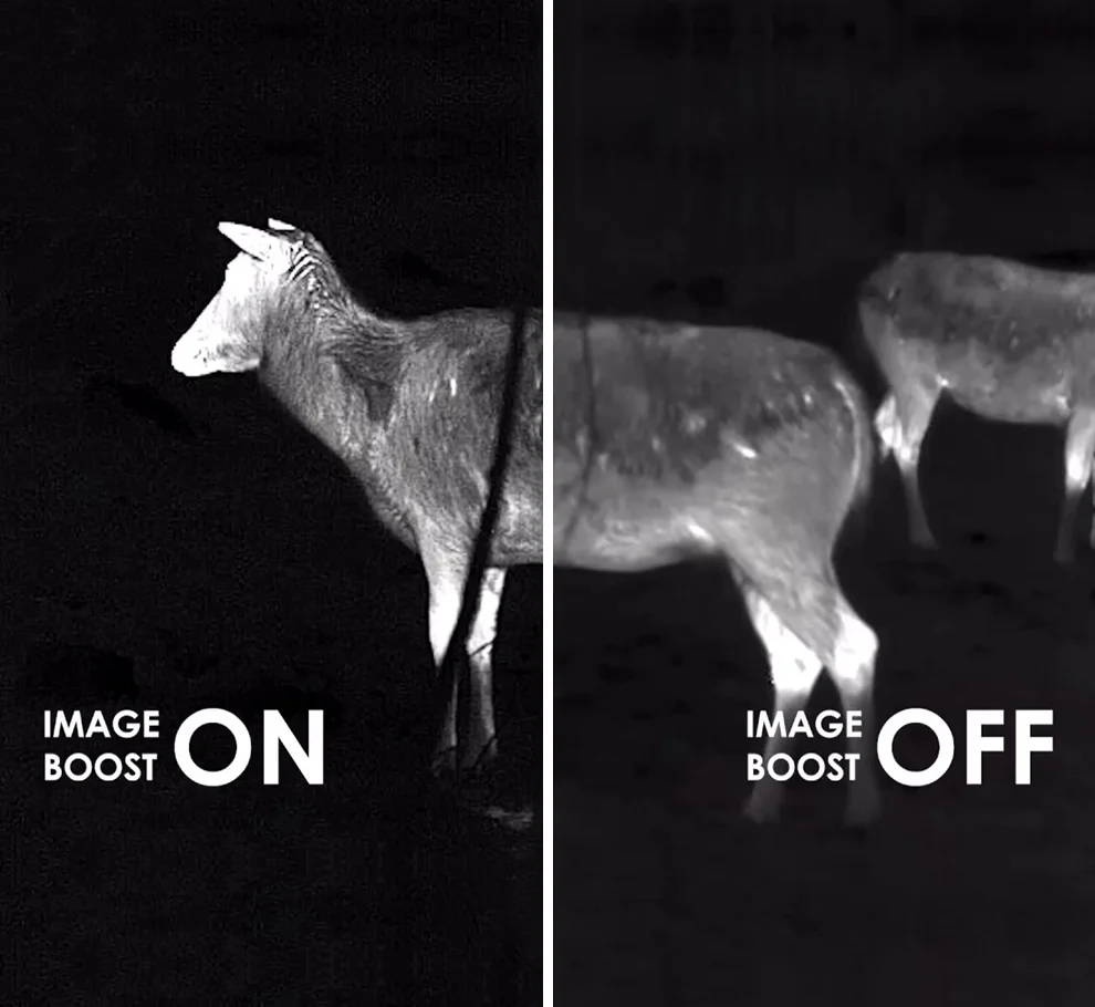 Thermal imaging sensor with NETD <25mK ensures perfect detail recognition even in the hardest weather conditions when thermal contrast is low. The smallest temperature differences will be clearly visible during the rainfall, fog or cold mornings in the most difficult conditions for thermal imager.