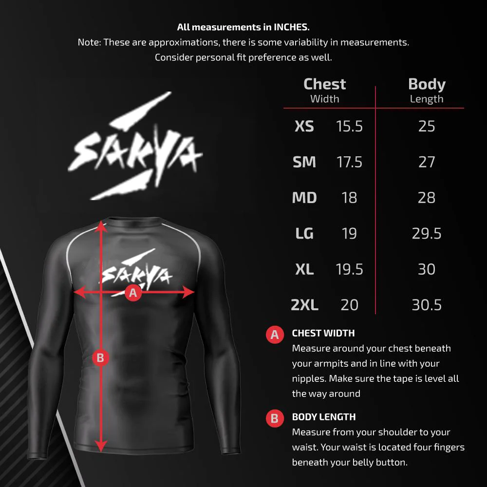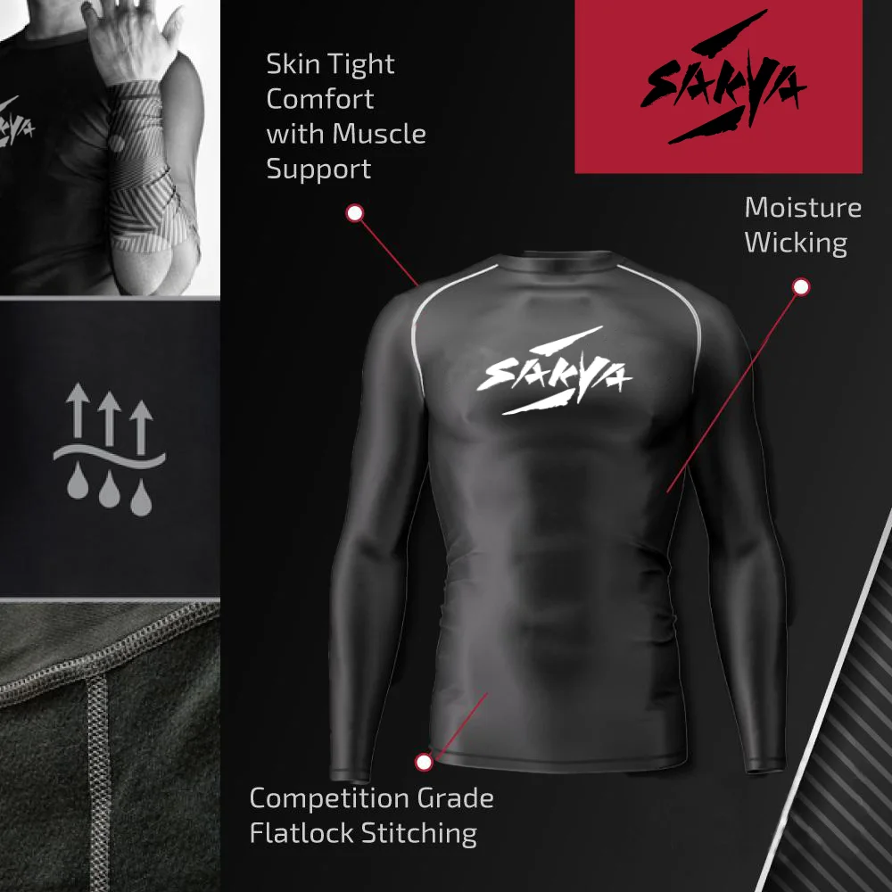 • Rashguard features supreme flatlock stitching that has been BJJ MMA battle tested by the SAKYA Team; you will not find a stronger option that naturally shapes to your body.