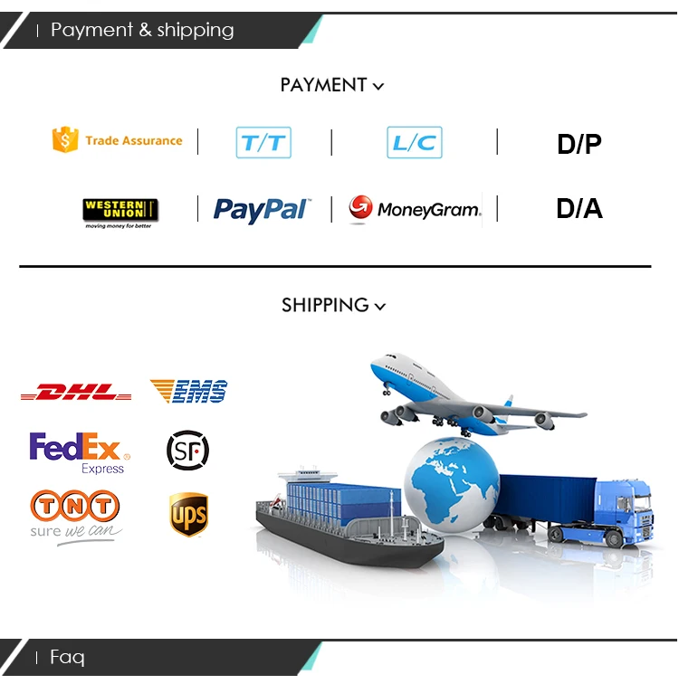 A4: By T/T, 50% deposit in advance, balance 50% before shipment, PayPal