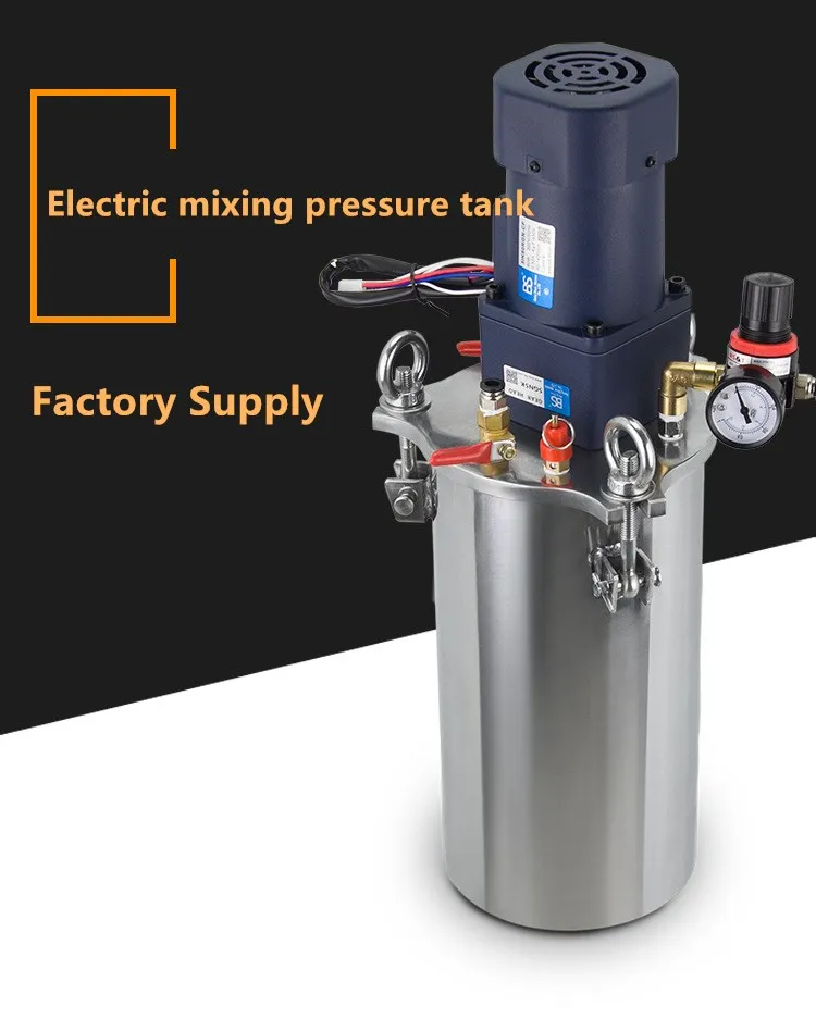 The carbon steel pressure barrel is equipped with a stainless steel inner liner. The storage pressure barrel body is made of seamless stainless steel tube. It is not easy to react with chemical substances, has a long service life, strong wear resistance and corrosion resistance, sturdy and durable, and the material of the lid and barrel Consistent, the surface of the stainless steel pressure barrel is polished and hardened, with high strength, good airtightness, non-sticky, and strong safety. The glue can be placed in the pressure barrel in its original packaging when used, and it does not need to be cleaned. It is easy to maintain. You can also pour the glue directly. Work in a pressure tank. There are many types of pressure barrels, including 1 liter, 2 liters, 3 liters, 4 liters, 5 liters, 8 liters, 10 liters, 15 liters, 20 liters, 30 liters, 40 liters, 50 liters and other different materials, and there are simple types , Manual stirring type, pneumatic automatic stirring type.