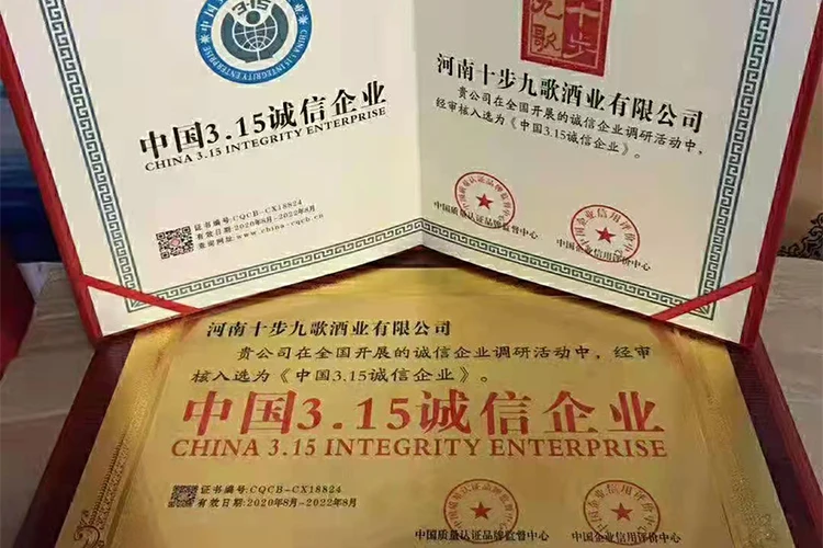 On November 21, 2018 obtained the "Ten Steps and Nine Songs" liquor registrar approved by the Trademark Office of the State Intellectual Property Office, on April 7, 2019, it obtained the "Ten Steps and Nine Songs" seal body wine registered trademark approved by the Trademark Office of the State Intellectual Property Office; in March 2019, it passed the AAA credit enterprise grade certificate and the AAA grade contract and trustworthy enterprise certificate.