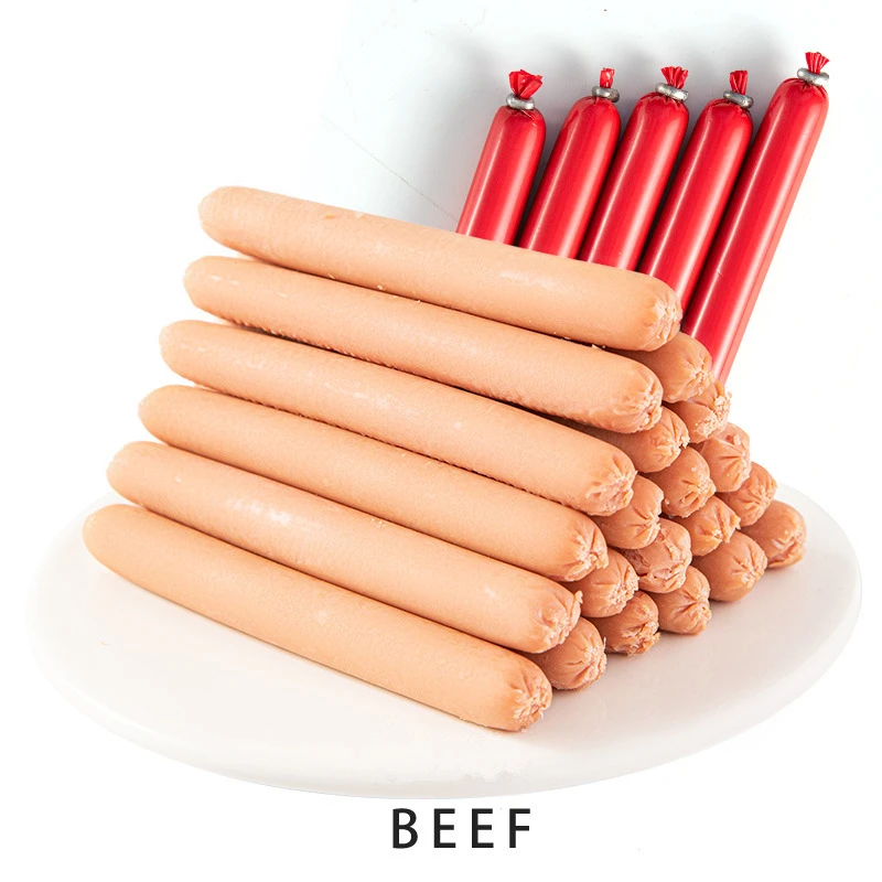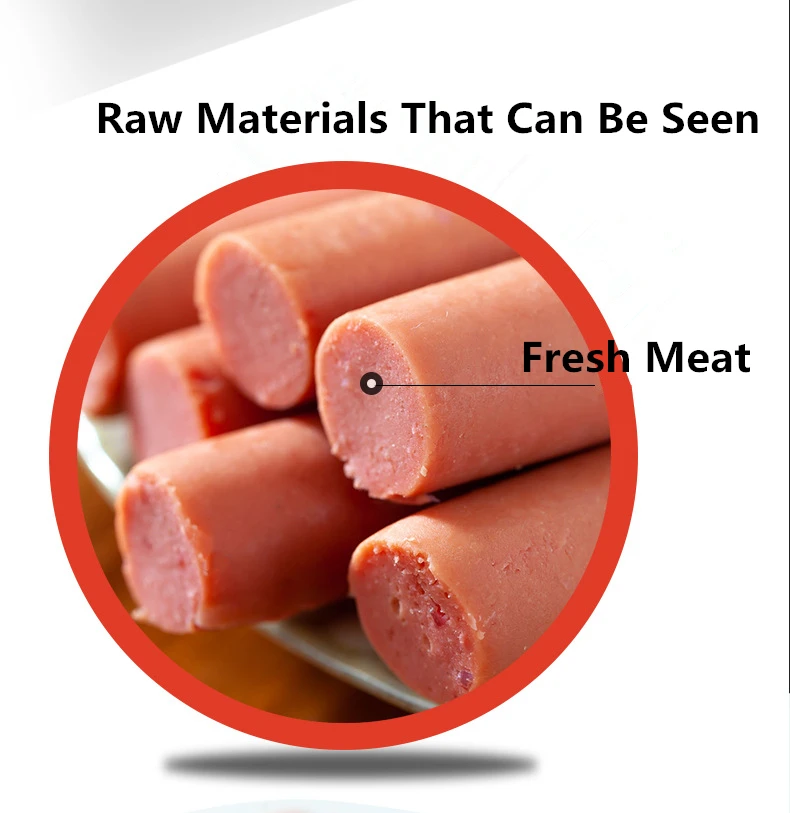 Pet Ham Sausages are made of chicken,beef,fish,duck meat, etc. There are chicken,beef,fish,duck four flavors. Selected high-quality fresh raw materials, scientific collocation, rich nutrition, meet daily needs. Fresh meat sausage,