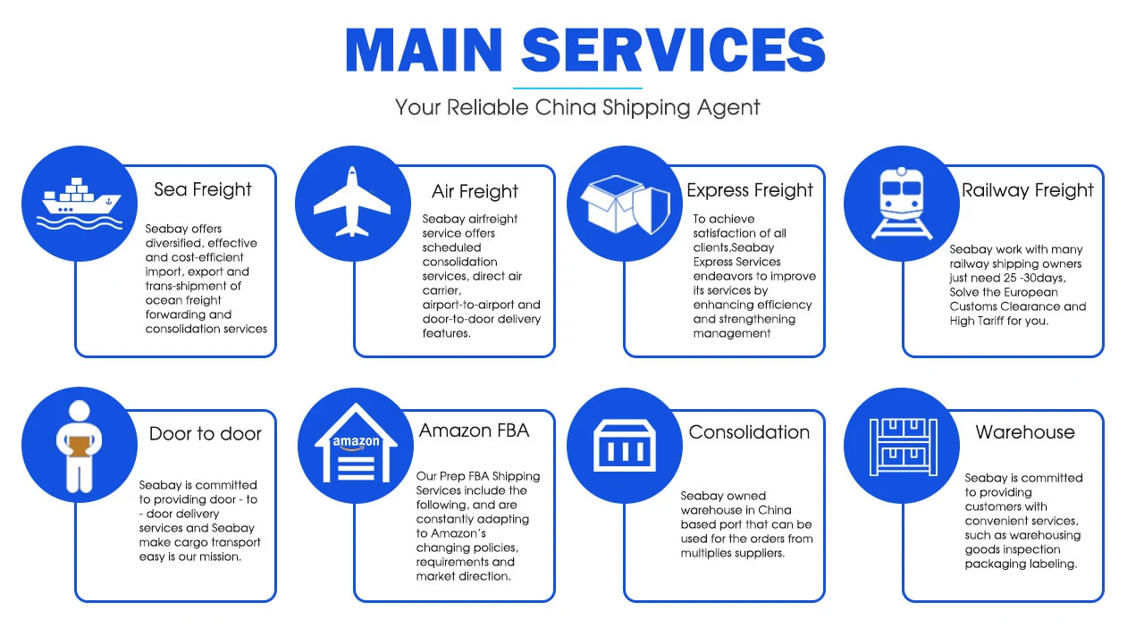 Main Products | Air Shipping, Sea Shipping, FBA Shipping, Express, DHL, UPS, Fedex,Railway Transport | ||||||