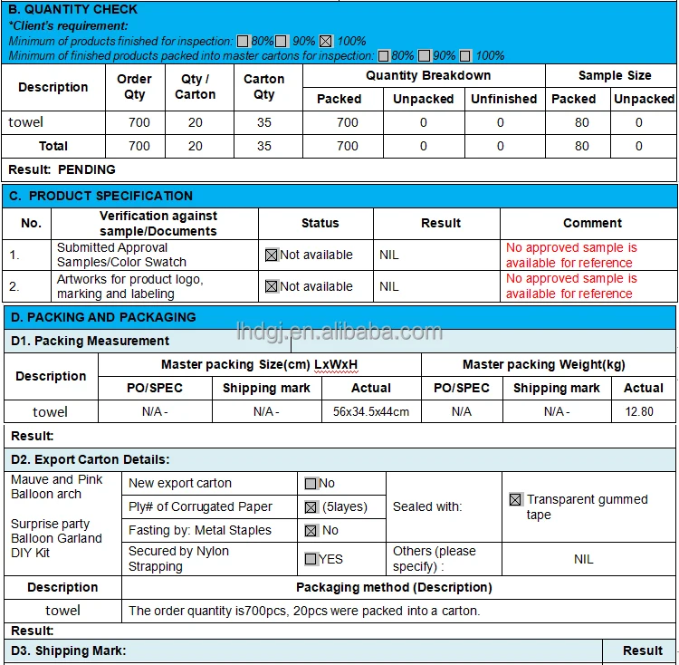 a. Save time and money by solving problems before shipment.b. We are an independent, certified and licensed product inspection company.