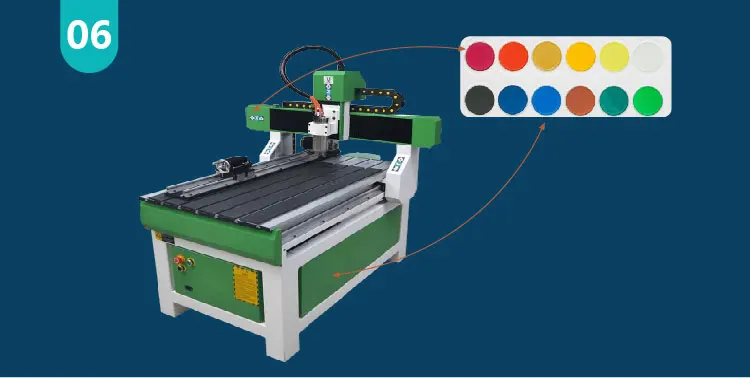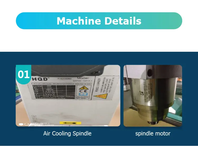 1.We use HQD Air Cooling Spindle 3.5/4.5/6KW 18000RPM Option , Less Noise , Fast Speed . We also can use water cooling spindle 3.2/4.5/5.5kw with Water Chiller option .