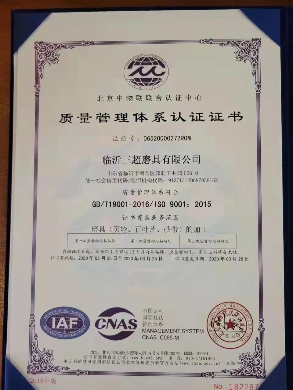 International certificate | ISO 9001:2015 / CE |