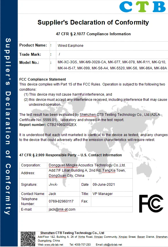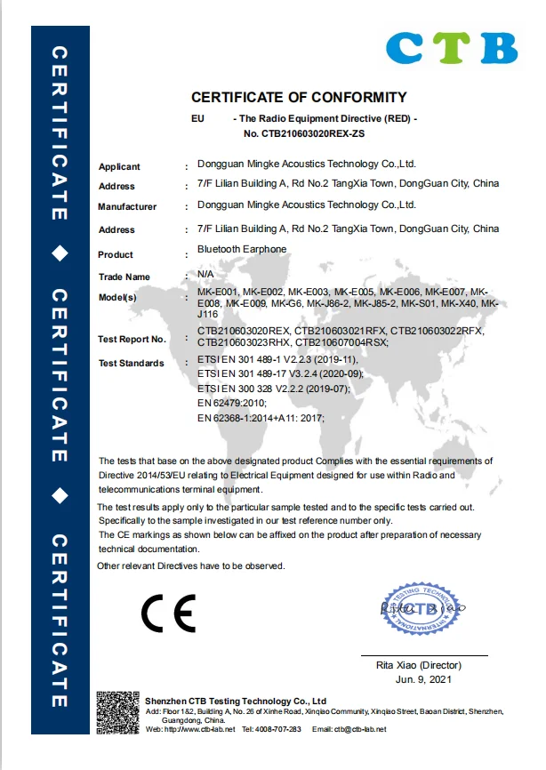 Dongguan Mingke Acoustics Technology Co., Ltd was established in 2020 and is located in Dongguan, China, enjoying convenient transportation and beautiful environment. Our company covers an area of 4000 square meters and has 128 employees. With rich experience in the earphone and acoustics industry, we are specialized in R&D and manufacturing the quality earphones. Our main products include earbuds, wired earphonesand neckband earphones. Certified by ISO 9001,dedicated to strict quality control and thoughtful customer service, our experienced staff members are always available to meet your requirements and ensure full customer satisfaction. With strong engineering capability, powerful manufacturing capacity and fast delivery, good customer service and technical supports and always respond in a timely-manner, we've been supplying our products to worldwide customers in North America, South America, Western Europe, Eastern Europe, Mid-East, South Asia, East Asia,Southeast Asia and Africa. Besides, we are making great efforts to develop new products to meet different customers' requirements.Our company has the required inspection measuring tools and testing equipments to strictly control the product quality. Adhering to the business principle of mutual benefits, we have had a reliable reputation among our customers because of our professional services, quality products and competitive prices. We'd like to work with customers worldwide and grow business together for win-win cooperation and common success. Welcome to visit us at your most convenient time. Thank you.