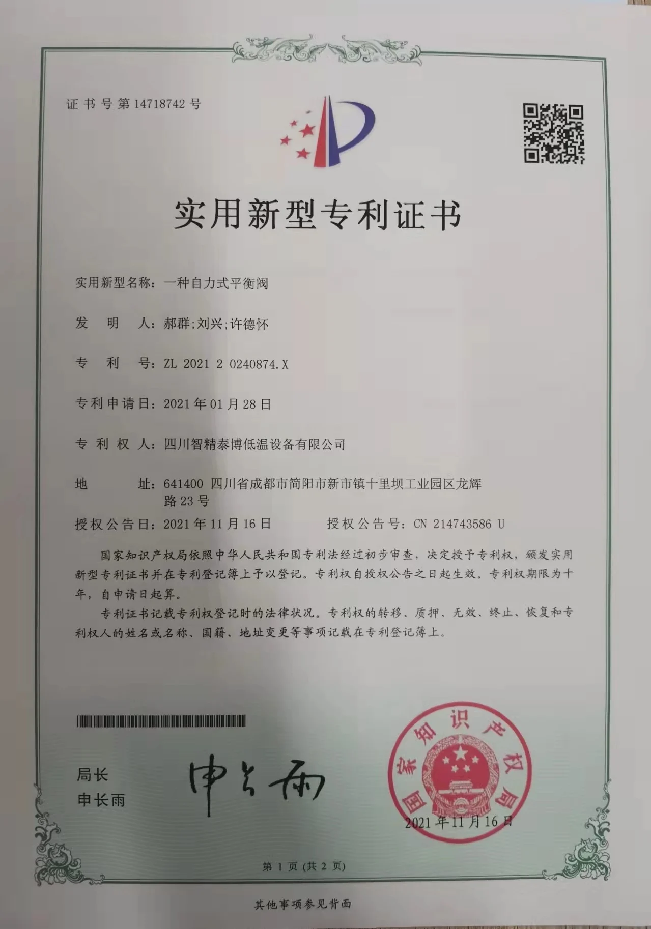 Inlet temperature:-90.15℃ Outlet pressure:0.695MPa(G)