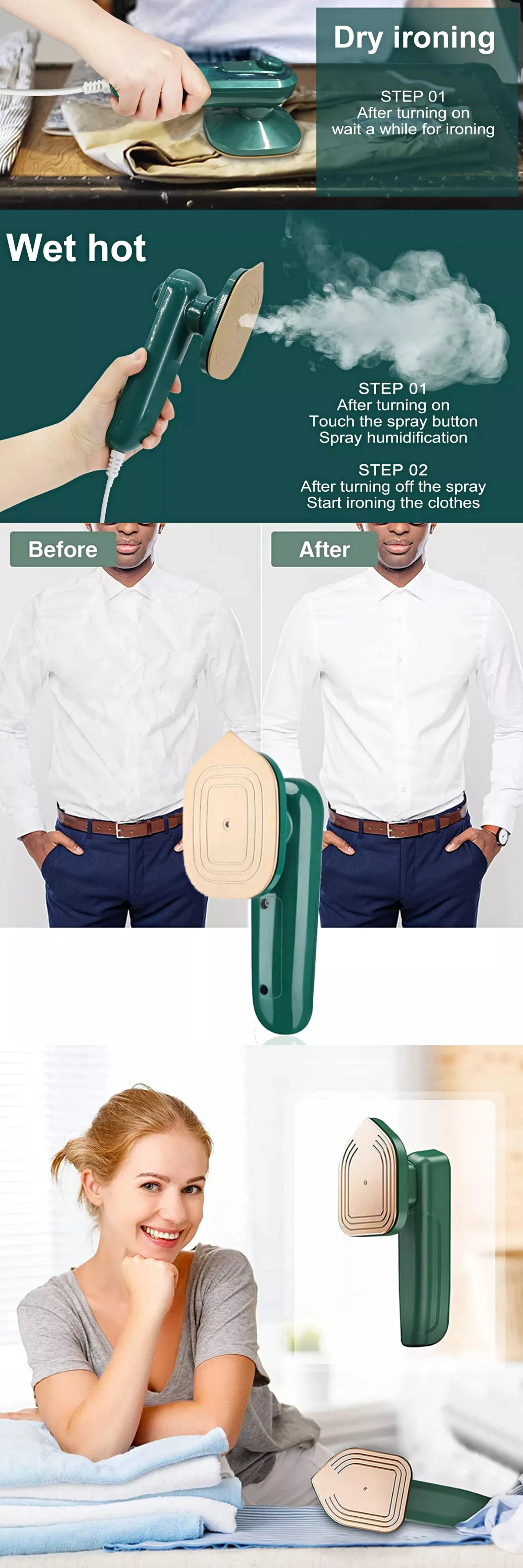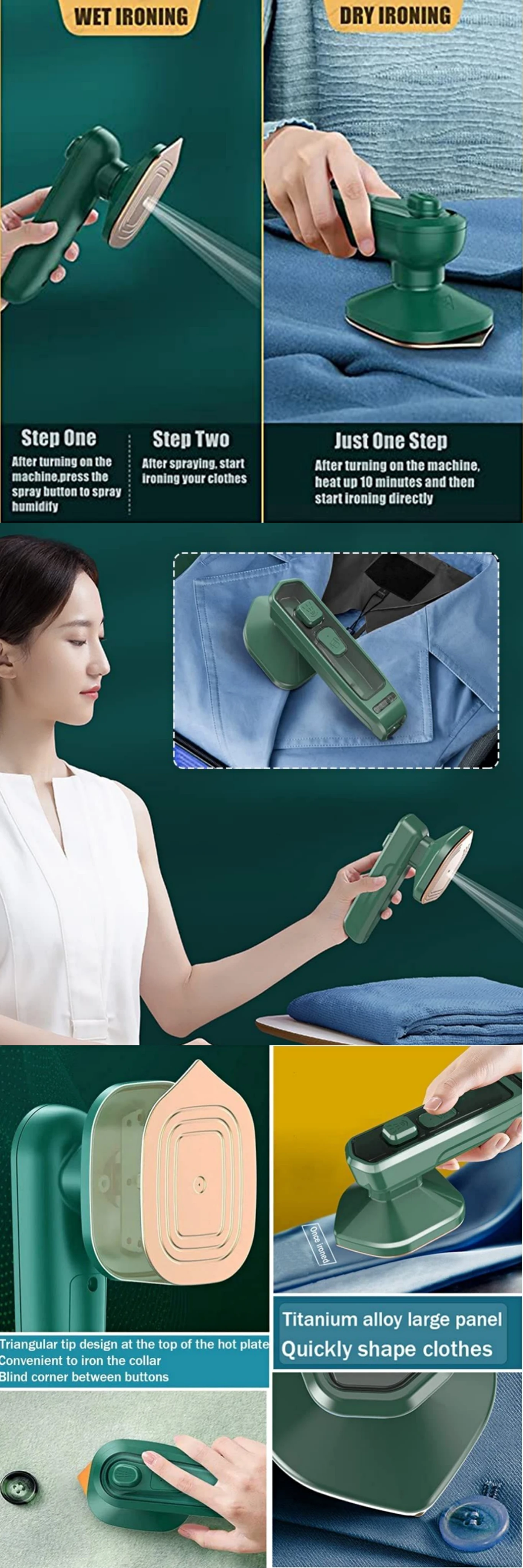 * ❤[PORTABLE IRONING MACHINE]:hand-held grip ergonomic comfortable grip. Equivalent to the weight of a "Pad", the girl holds no burden and holds the weight with one hand. Lightweight small easily carried in the suitcase.