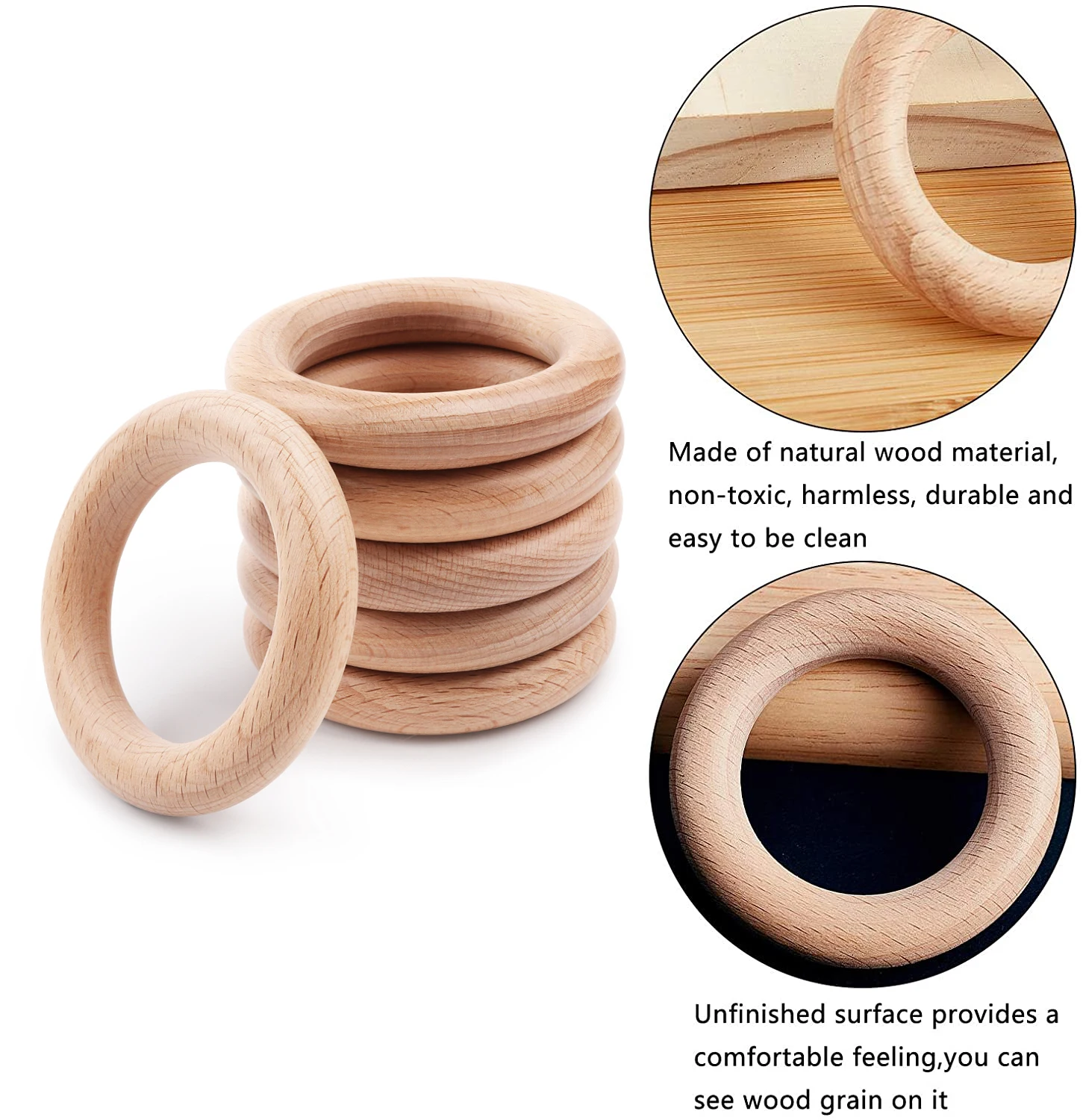 1.Wooden teether for babies, so you can create beautiful teething necklaces, make nursing bracelets, pacifier clips , baby rattles etc... 2.Creative teether baby toy for teething, relieve teething pain , and exercise your baby's teeth . 3.Manufacturers dpecially design teething toys to provide maximum relief while giving baby something safe and fun to play with. 4.These wooden baby toys have a smooth surface and are safe and environmentally friendly