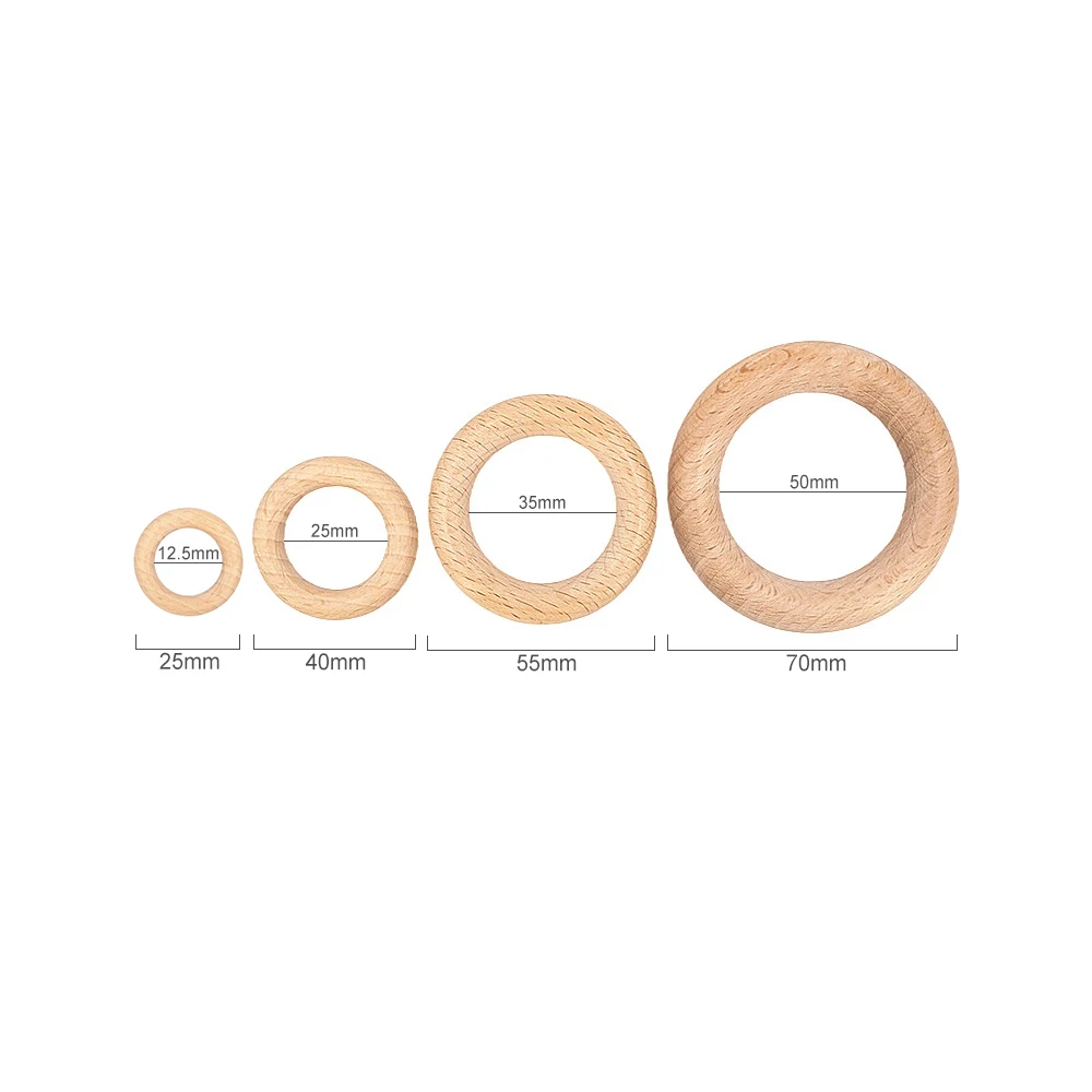 High Quality 55mm Beech Wooden Organic Teething Rings Round Wood Teether Toys Baby