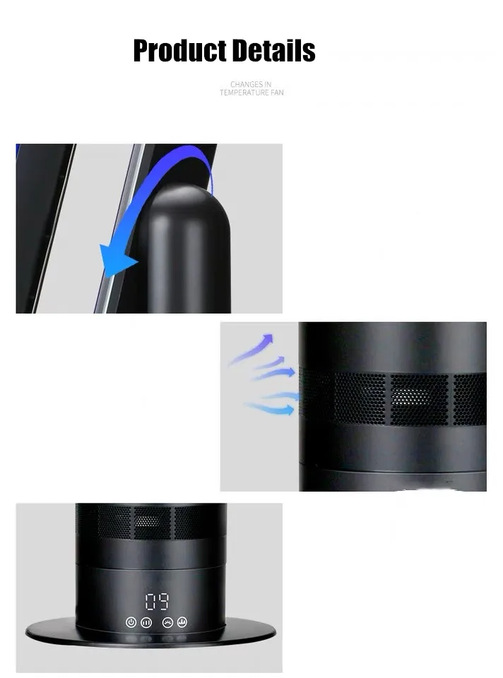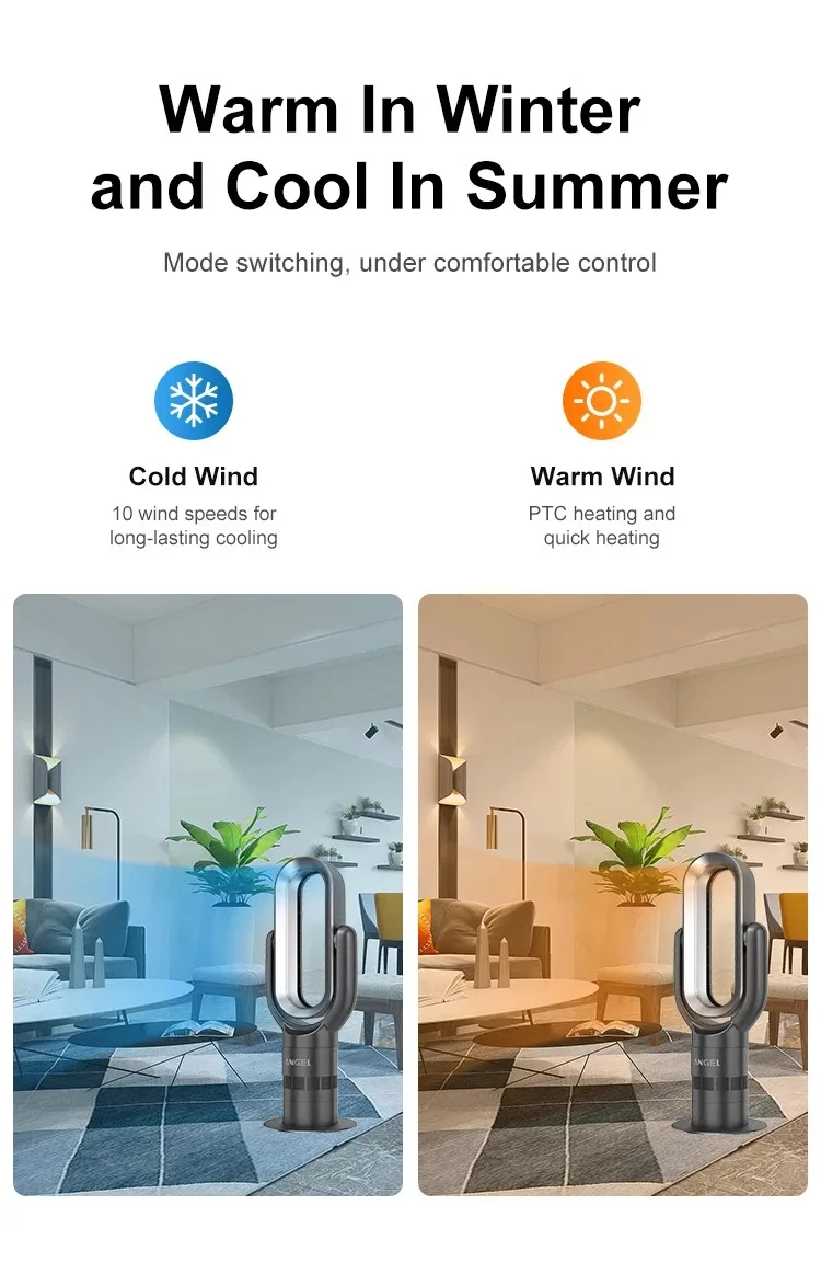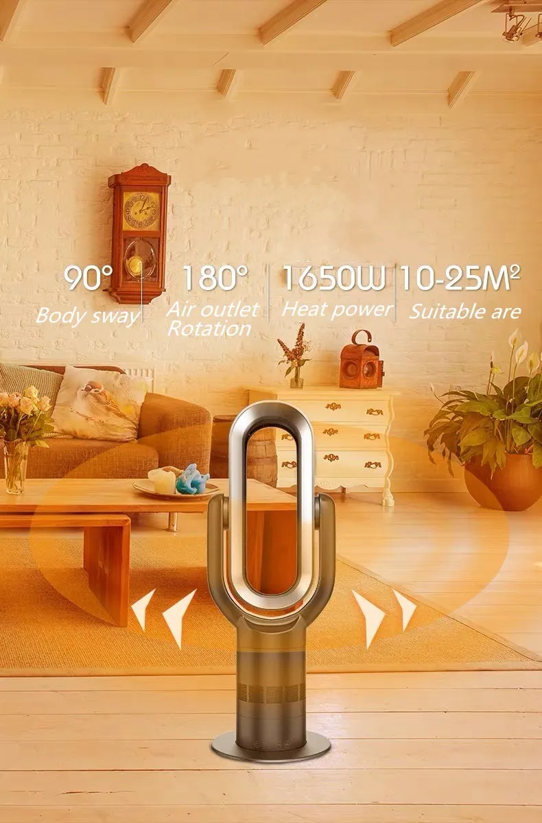 TOP Sale CE SAA UKCA ETL Certified 1650 Watt PTC ceramic heat Auto sensors Indoor Temperature ABS Table Bladeless tower fan with heater | ||||||
