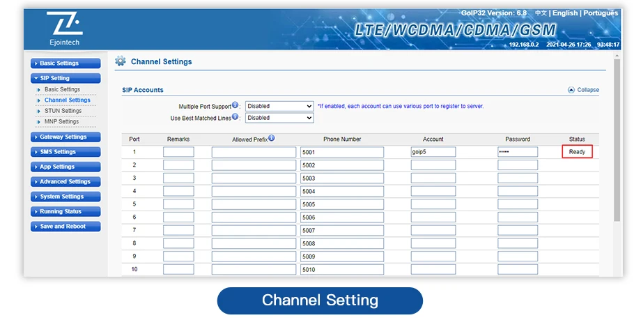 Number of Channels | 32 Channels 128 SIM (Support 32 Sim Work at Same Time) |
