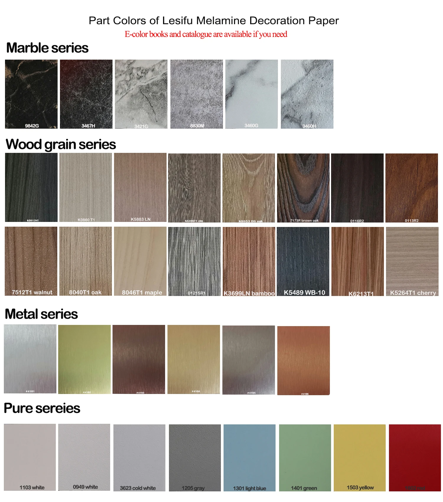 Melamine color | woodgrain, solid, marble, metallic |