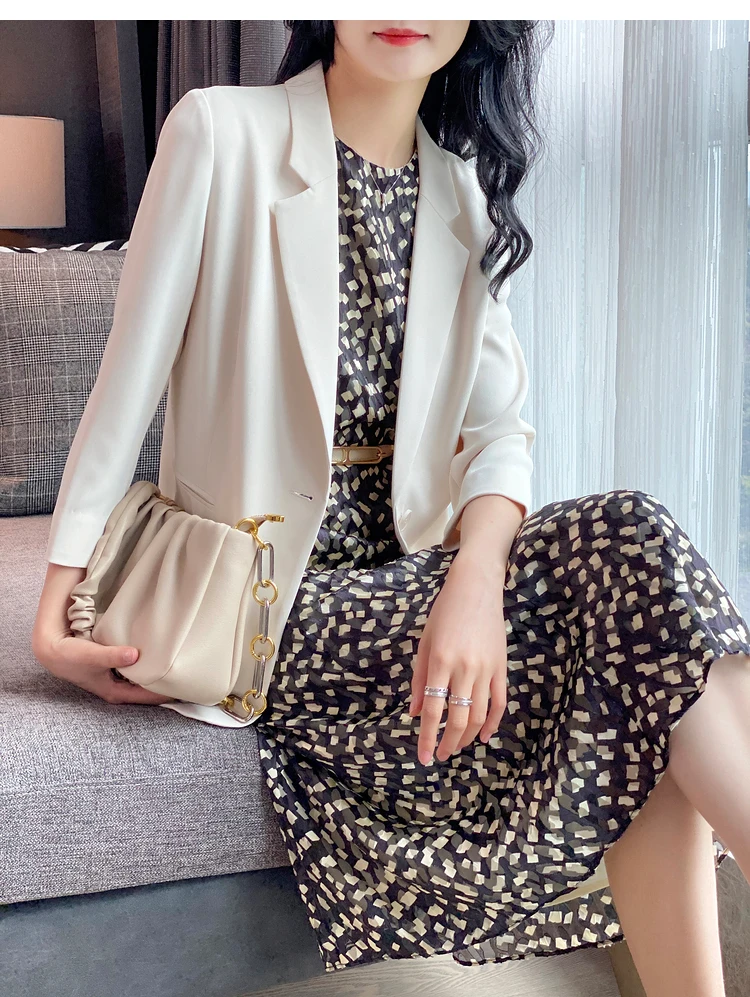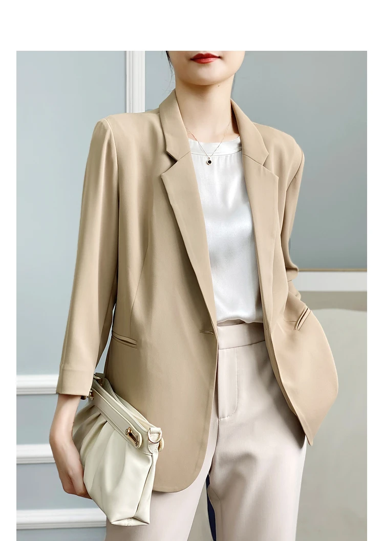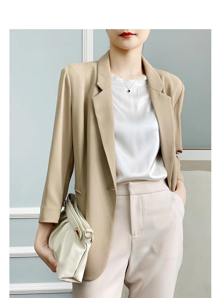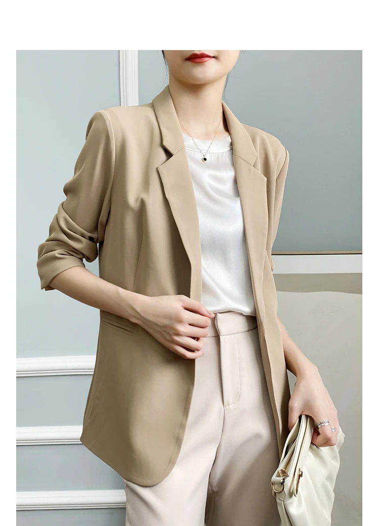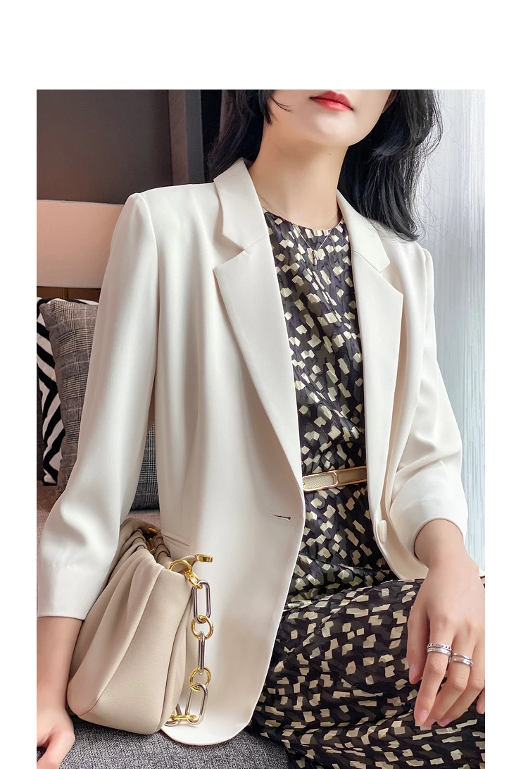 - Женский однотонный пиджак test123 из уксусной кислоты летний костюм для женщин новинка 2022 темпераментный с семиконечными рукавами гонок