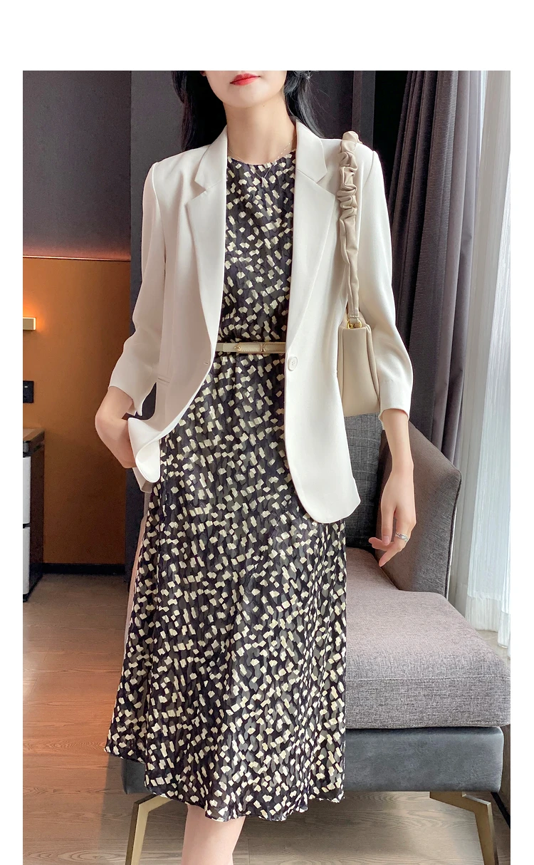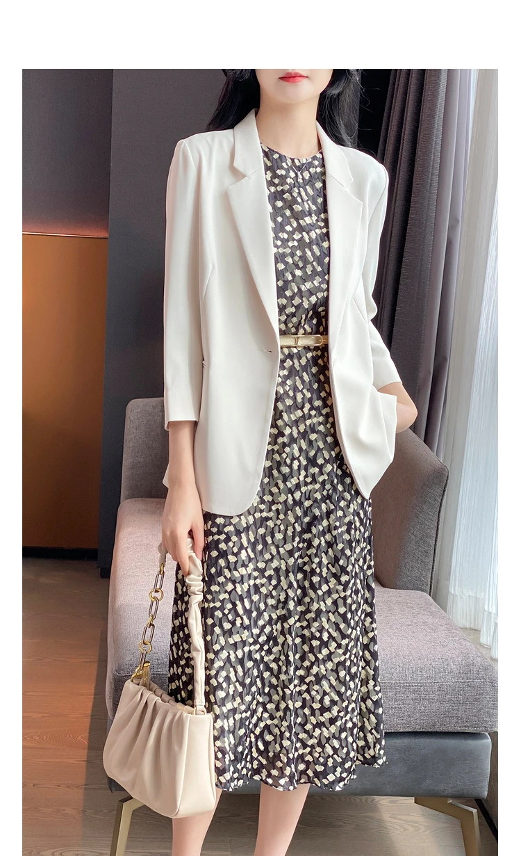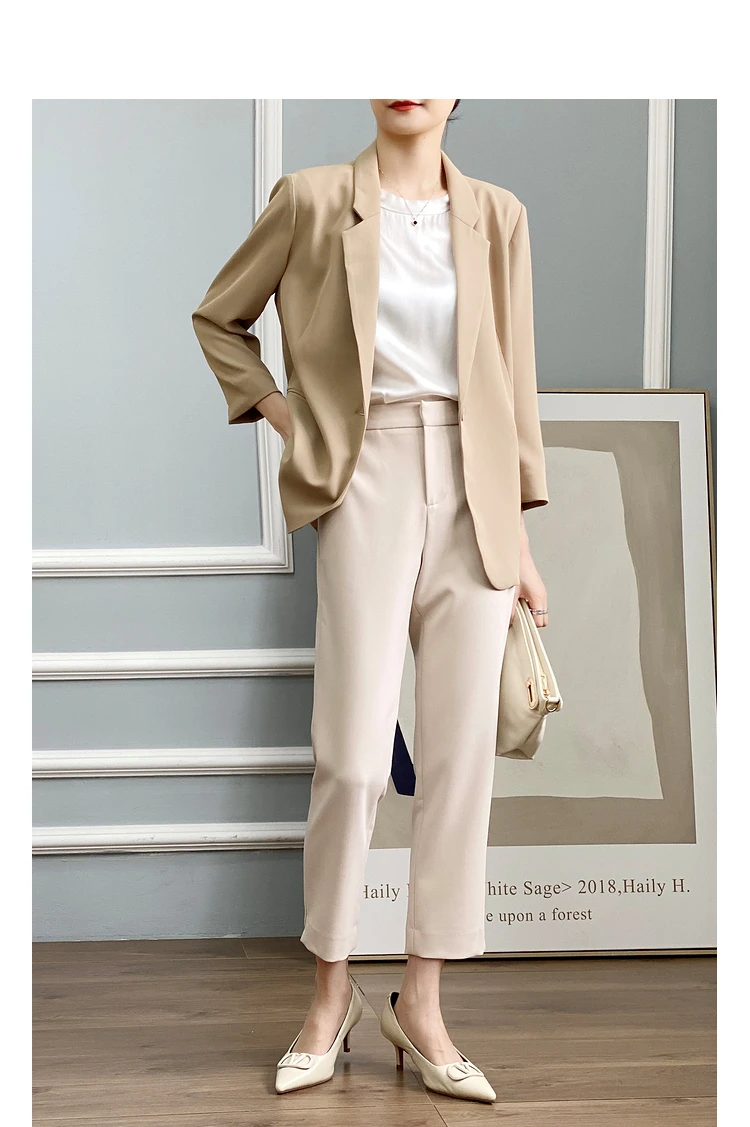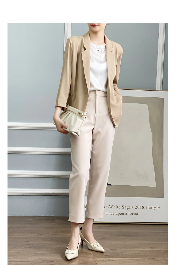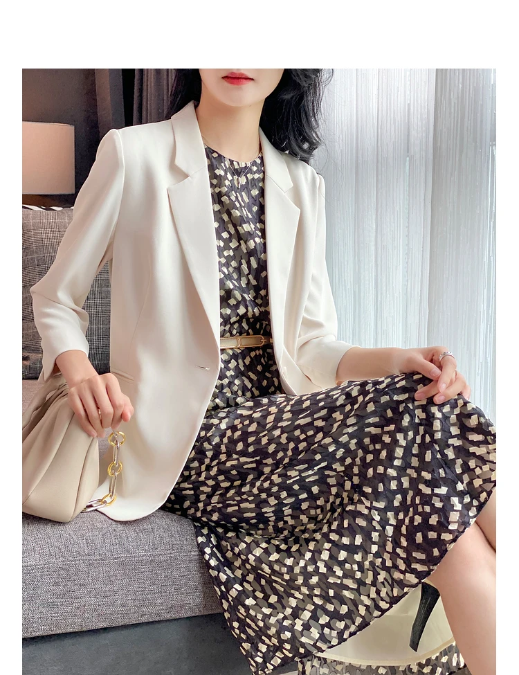 - Женский однотонный пиджак test123 из уксусной кислоты летний костюм для женщин новинка 2022 темпераментный с семиконечными рукавами гонок