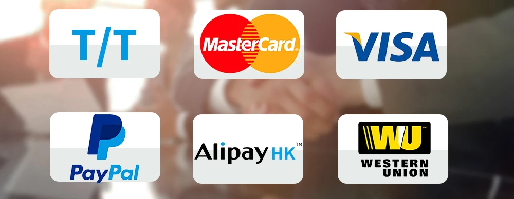 Trading with us will make you feel extremely convenient and pleasant, we accept a variety of payment methods, such as T/T, Credit Card, PayPal, Alipay, WesternUnion, etc.