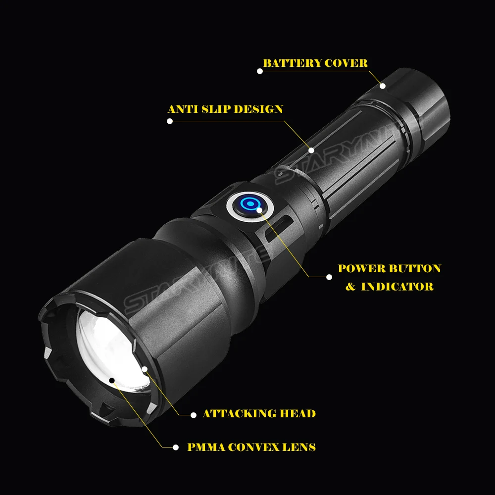 STARYNITE 2022 HIGH POWER HANDHELD RECHARGEABLE LED TACTICAL 18650 FLASHLIGHT TORCH PROFESSIONAL