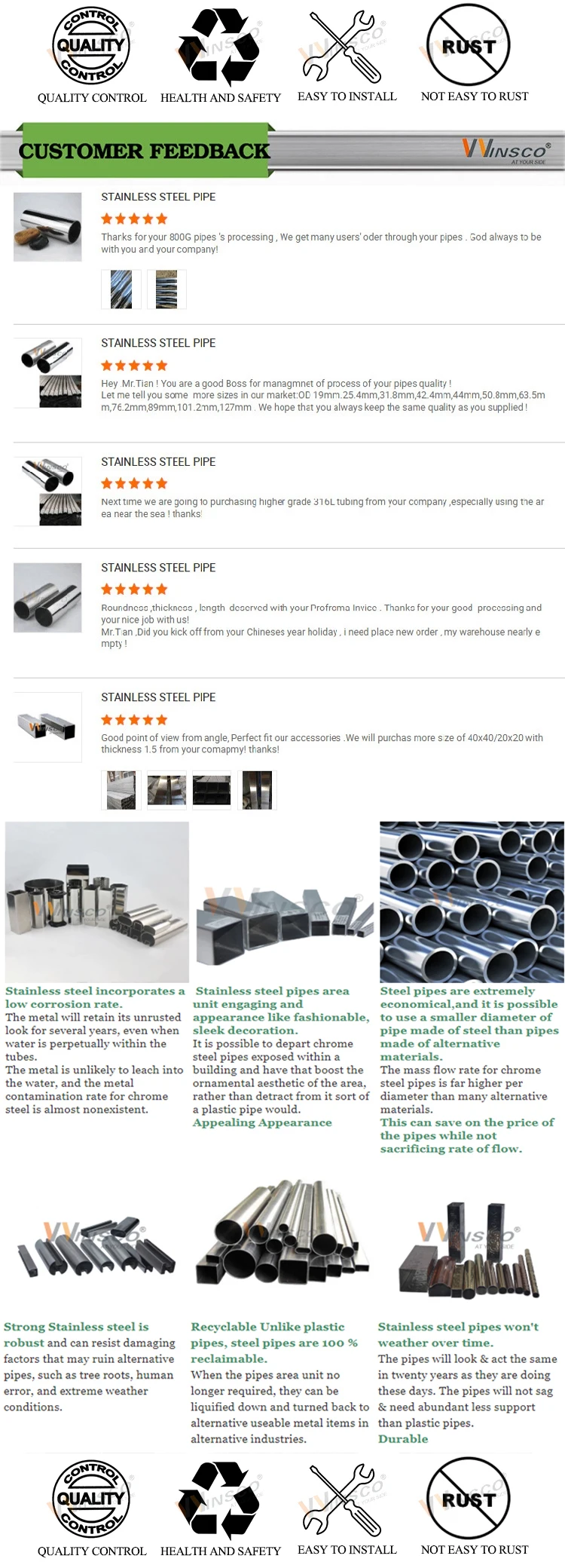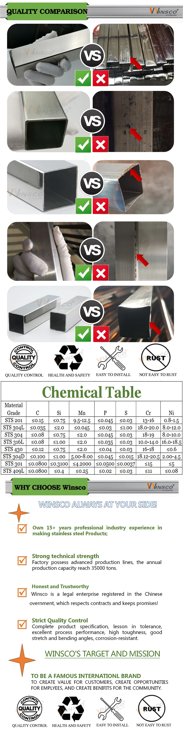 Standard | ASTM A554/JIS G3446 /CNS 5802 /EN 10217-7/EN 10296-2,EN 10305-2,EN 10305-5,ASTM A269, ASTM A270. | ||||||