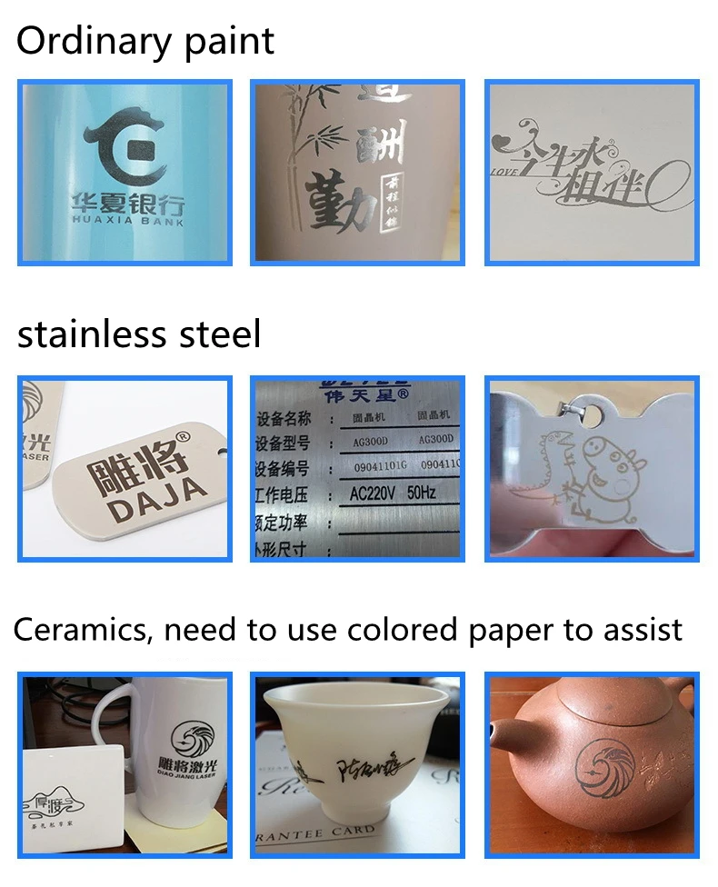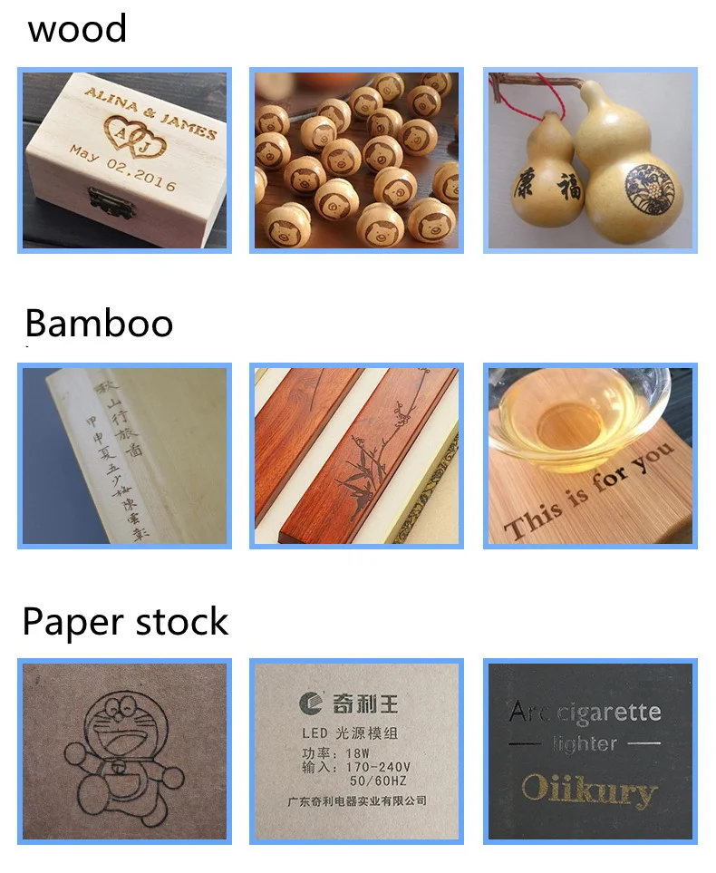 1. Wood, paper, plastic, leather, bamboo, bones and teeth, acrylic and other materials! The engraving speed will be faster than the low power ones!