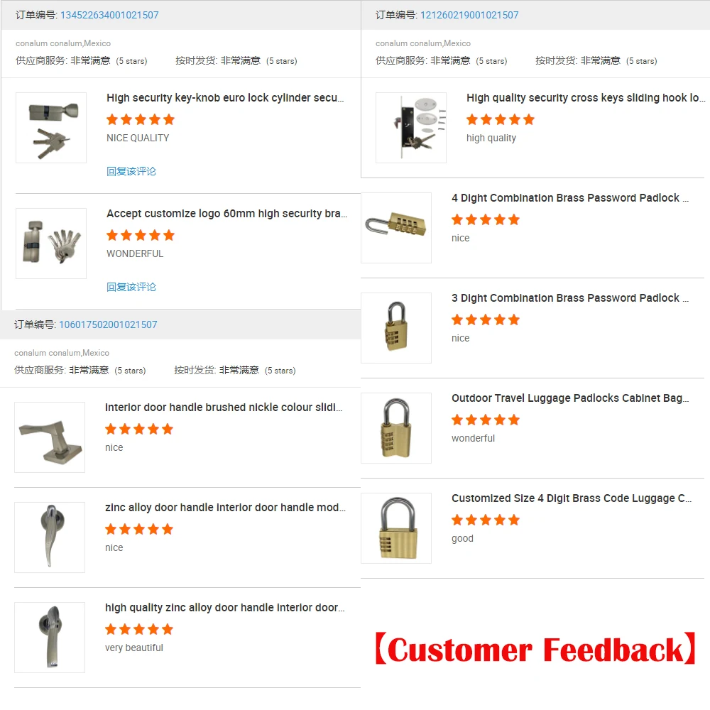 focused on various kinds of metal products, including locks, cylinders, door handles, hinges and so on. Our products are exported