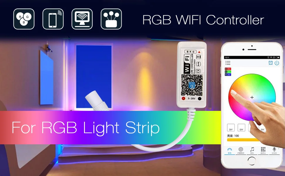 3.You can turn on/off, dim/brighten your led light strip; choose from 16 different colors , perfect control choice when you have trouble with the app.