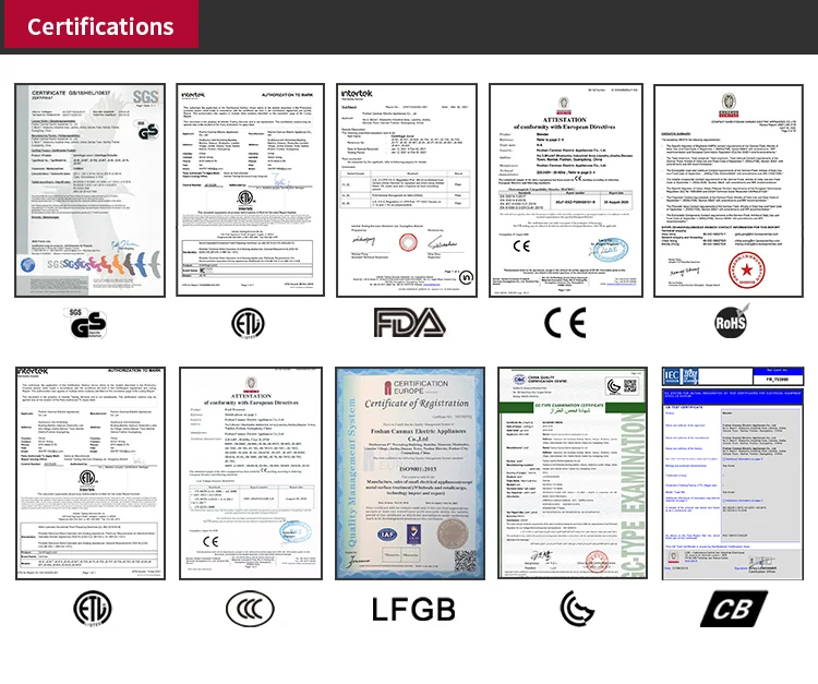 Our company set up an efficient production management system and a strict quality control system to ensure product quality,Our products passed GS,ETL,CE,CB,CCC, LFGB,RoHS,REACH, ERP, PAHs,Weee,G-Mark approvals.