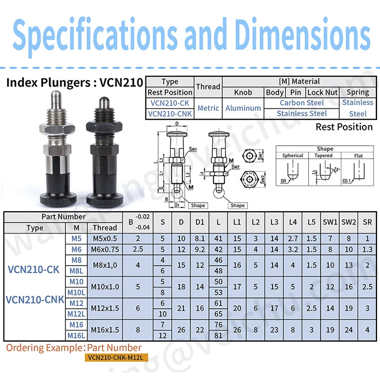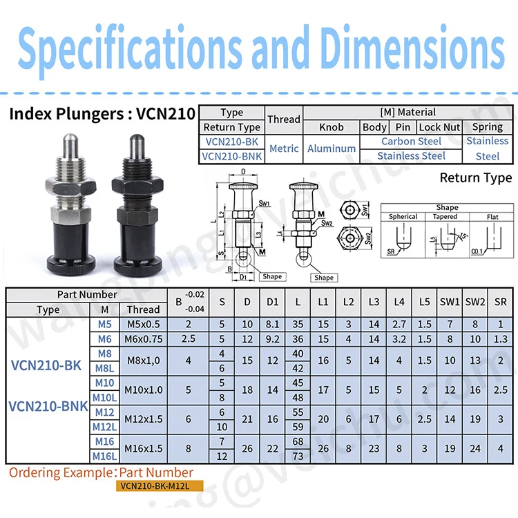 Product Name: | veich VCN210 hand retractable aluminum knob Spring indexing plungers | ||||||