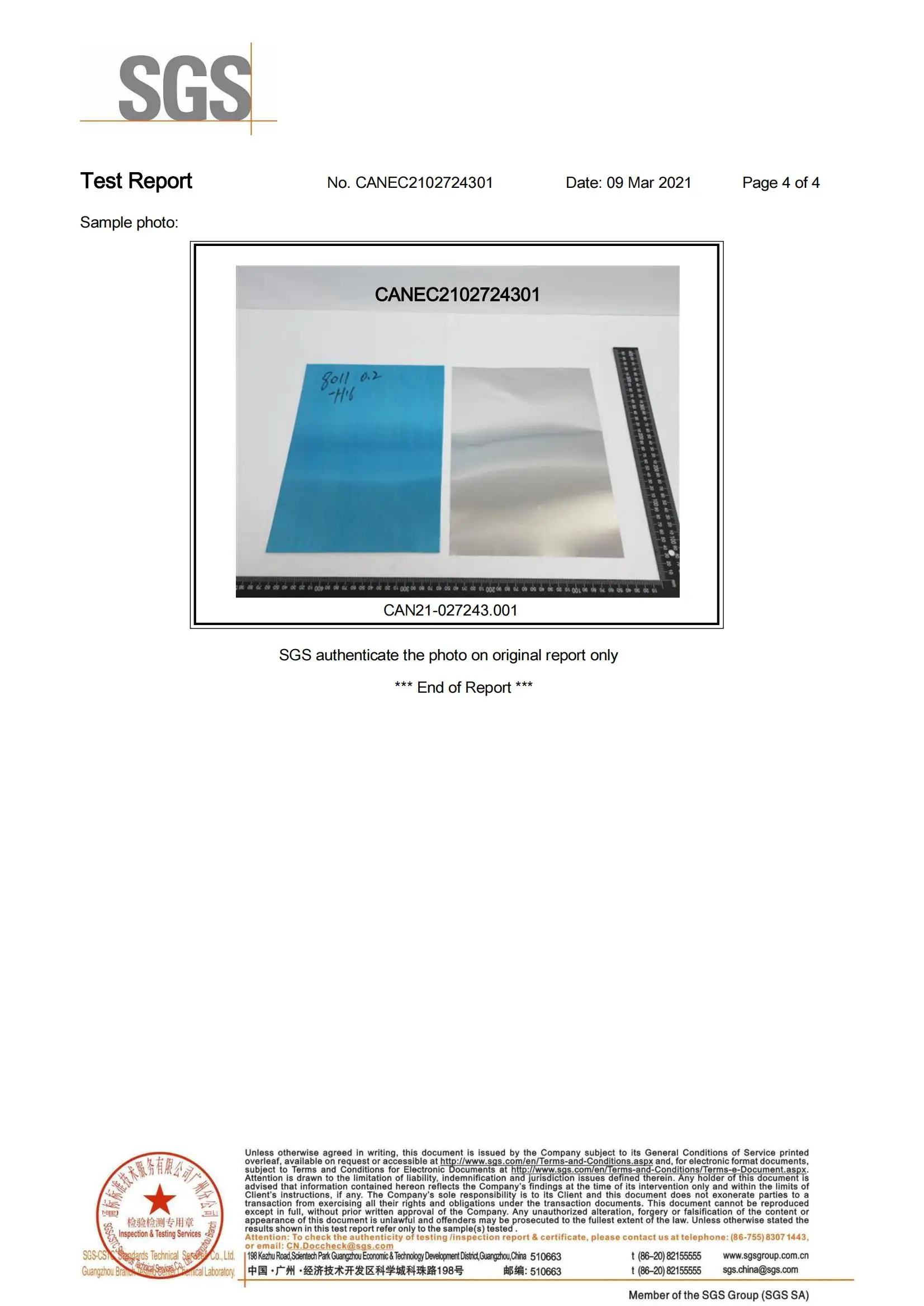 Material: Aluminum 8011