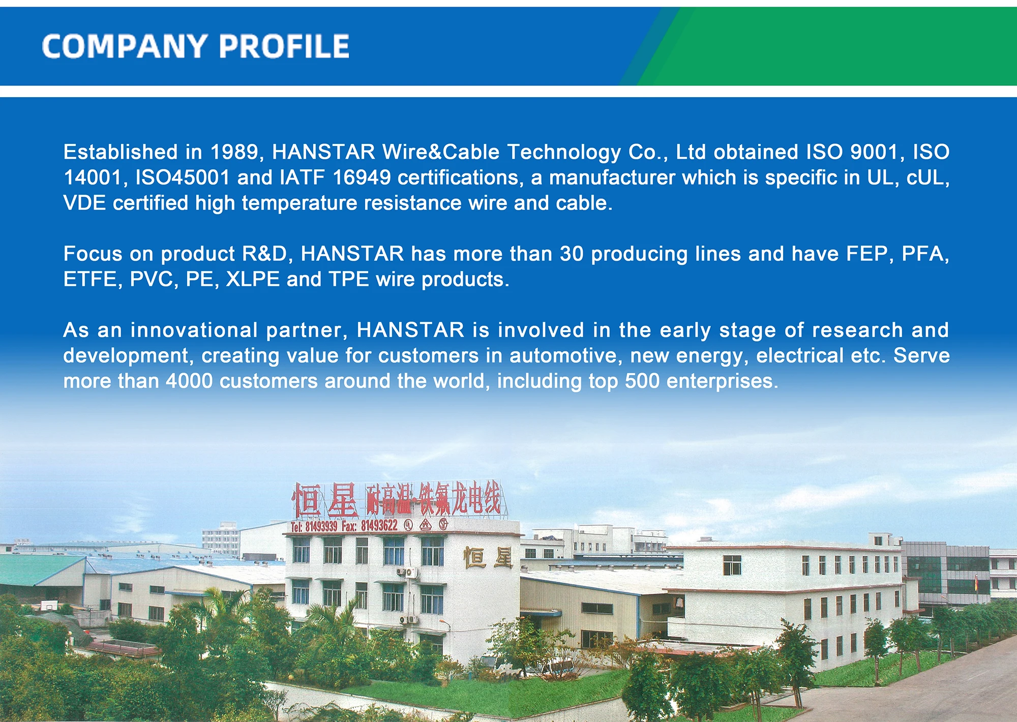 A: HANSTAR Company is a professional cable manufacturer with 30 years production experience.