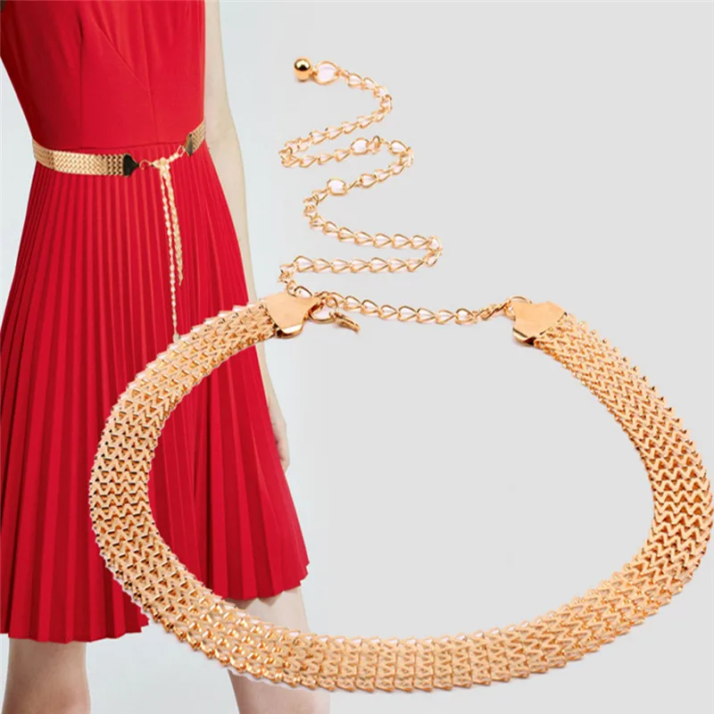Women Fashion Hip High Gold Narrow Metal Chunky Fringes Belt Adjustable Belly Body Waist Long Chain