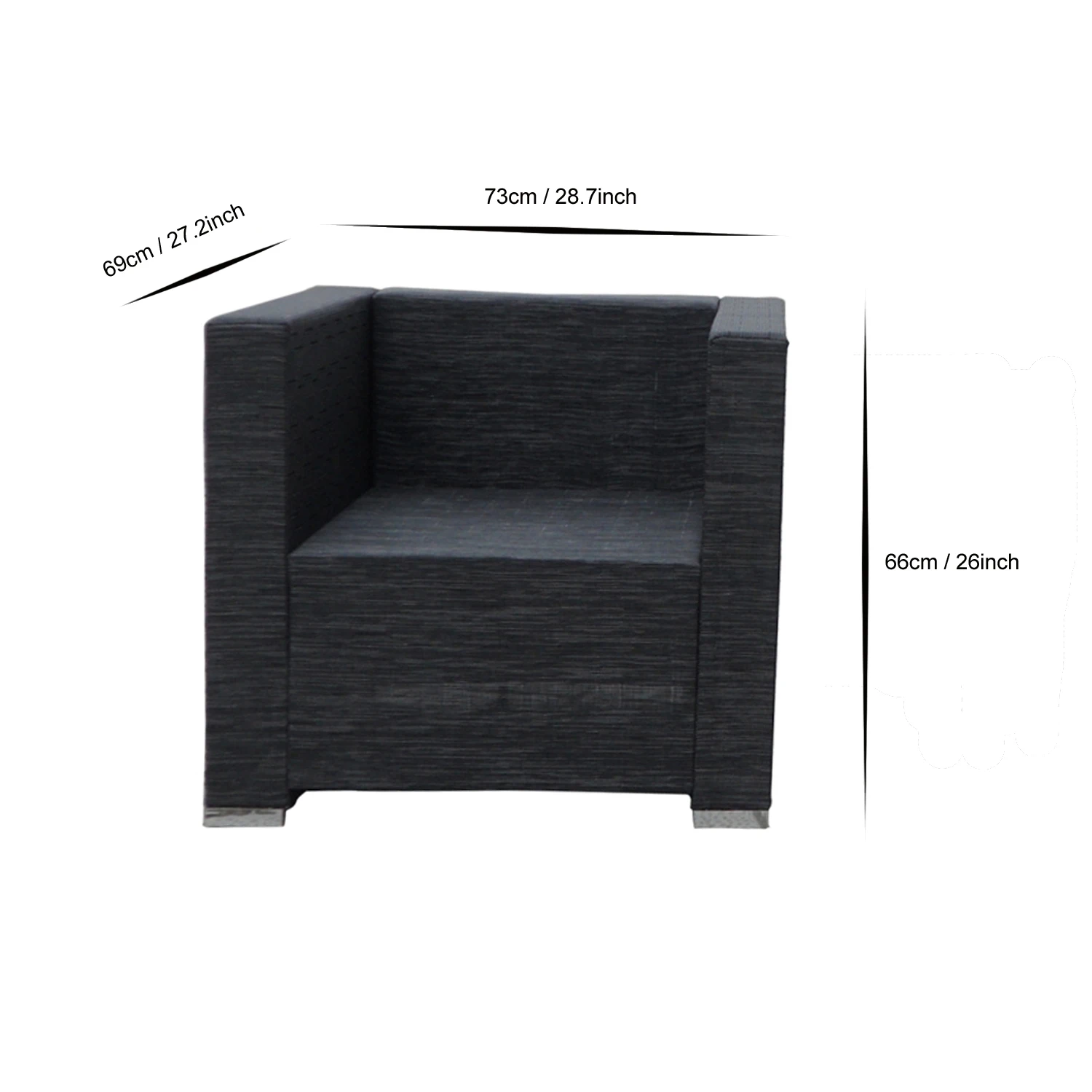 Specifications: | ✔Material- Textilene fabric+ Aluminum Tube Aluminum tube16x16x1.2mm/20x20x1.2mm;Troughend glass:5mm thickness.the crew plate black zinc.cushion:8cm thickness;sponge welt:3cm;Non-weave-fabric with zipper. ✔Product Size: Single Sofa - 730x690x660mm Tea Table - 500x500x420mm Stool - 550x550x380mm | ||||