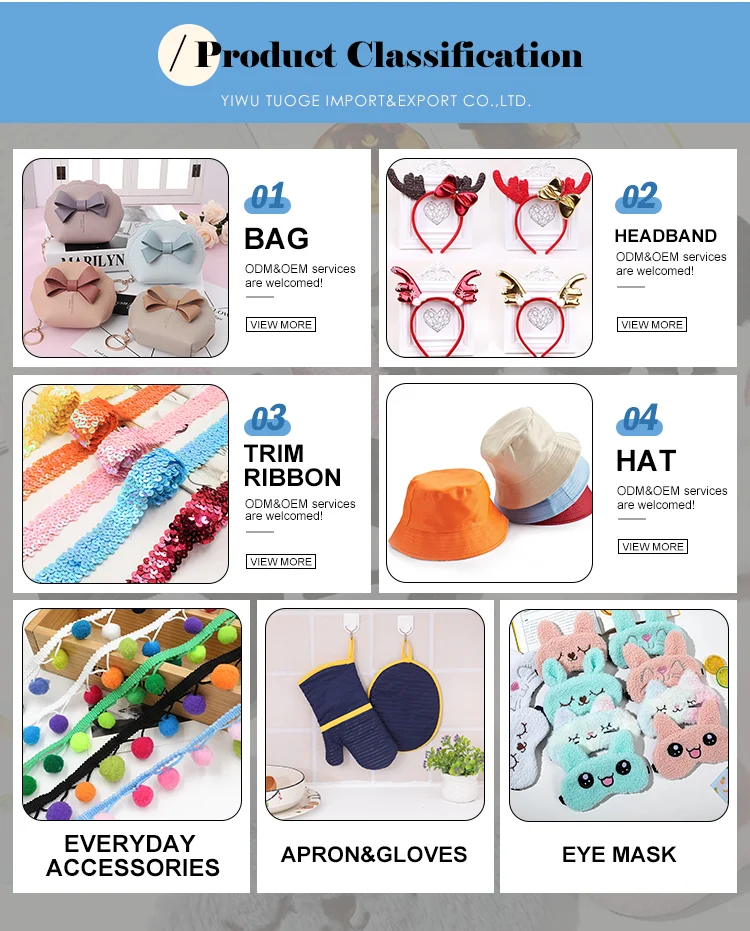 Bags,Hats,Apron&gloves,headband,Trim Ribbon and everyday Accessories.