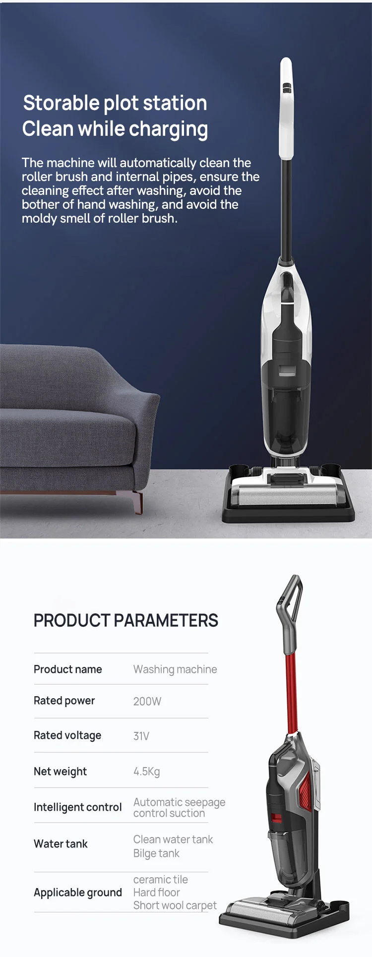 ①. Multifunctional wet and dry vacuum cleaner: Washing, vacuuming and mopping the floor in one function, which can remove floor