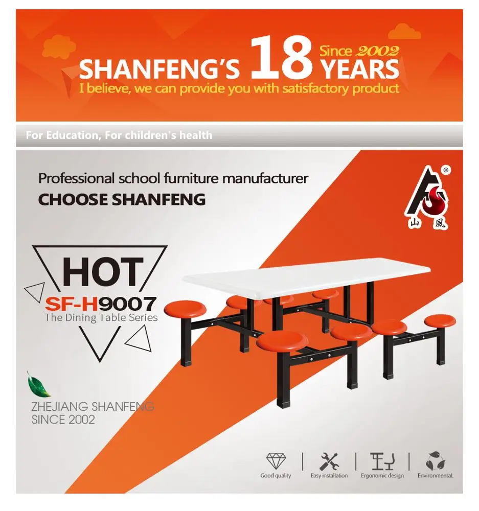 eight seats school restaurant wholesale fiberglass dining table and stool set