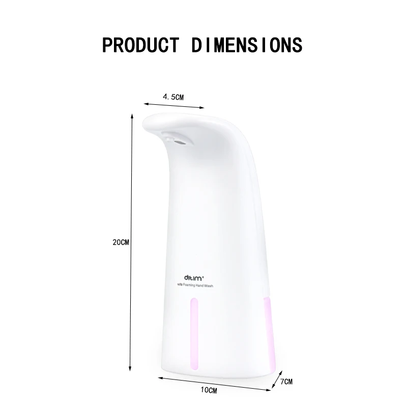 ▲Infrared sensor detects your hand from as far away as 2.3 inches,more convenient and environment-friendly.You can also press the button to turn on/off. Now you no longer havie to clean up soap that's collected around the bottle on the sink or sanitize the pump