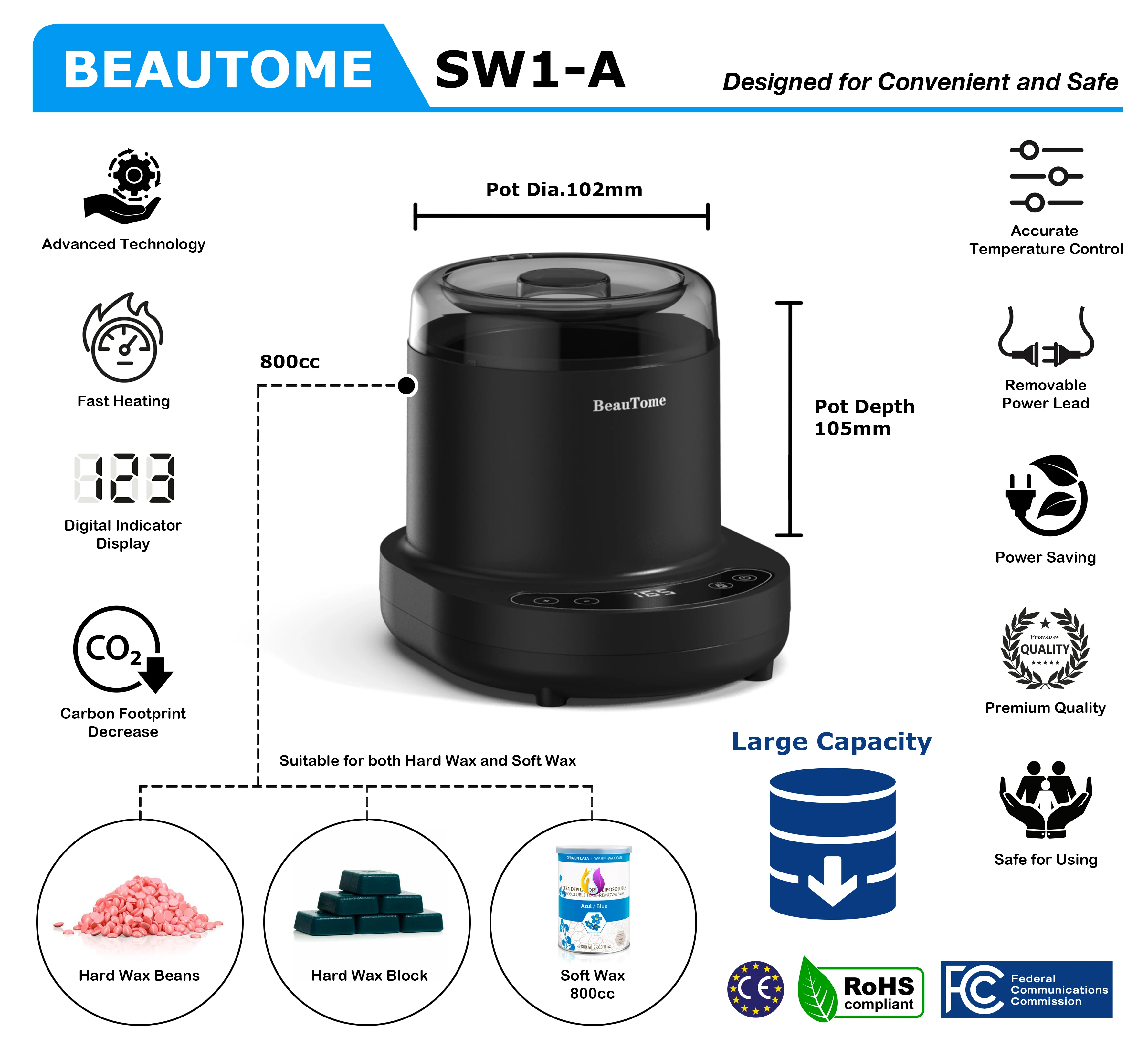 Function | Wax Heater for Melting Sugar wax, Soft Wax, Hard wax beans | |||||||||||||||||||