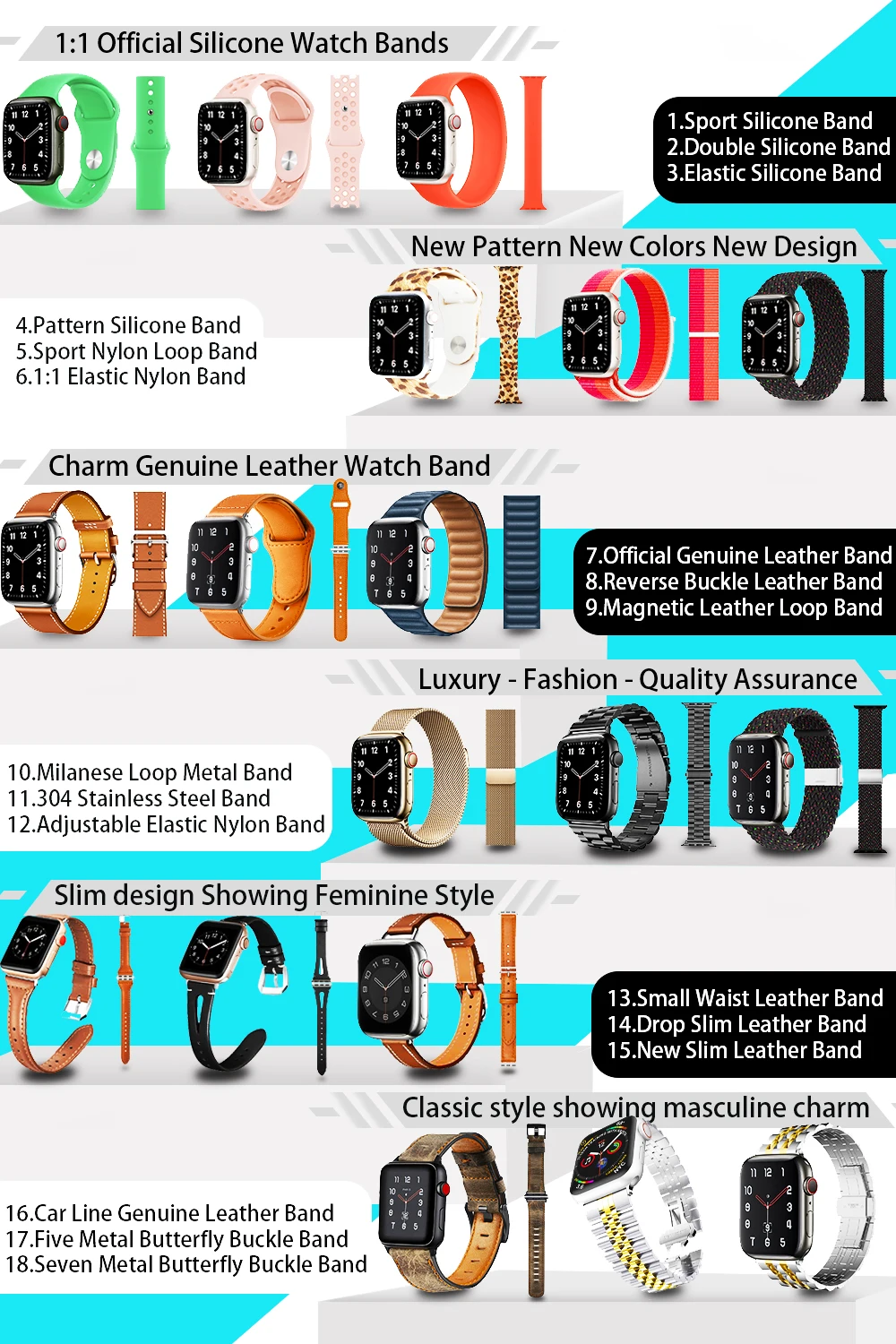 1.We can design and produce any metal, silicone, leather and stainless steel straps