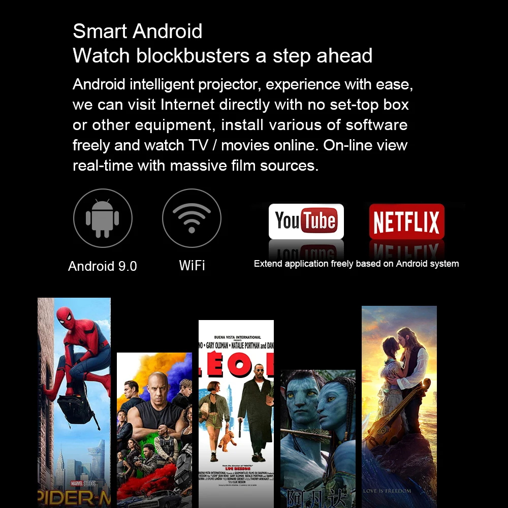 - Android 9.0 Version: Intelligent smooth operation experience, on-line view real-time with massive film sources.