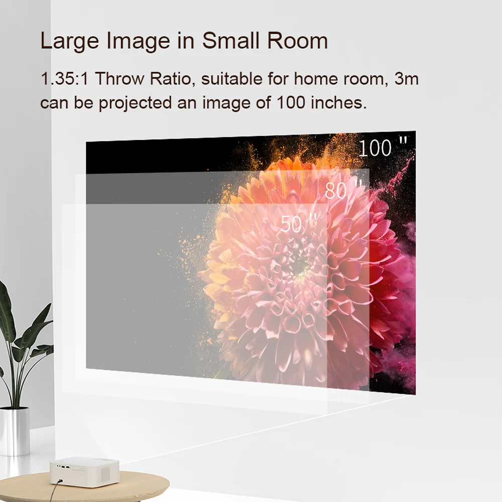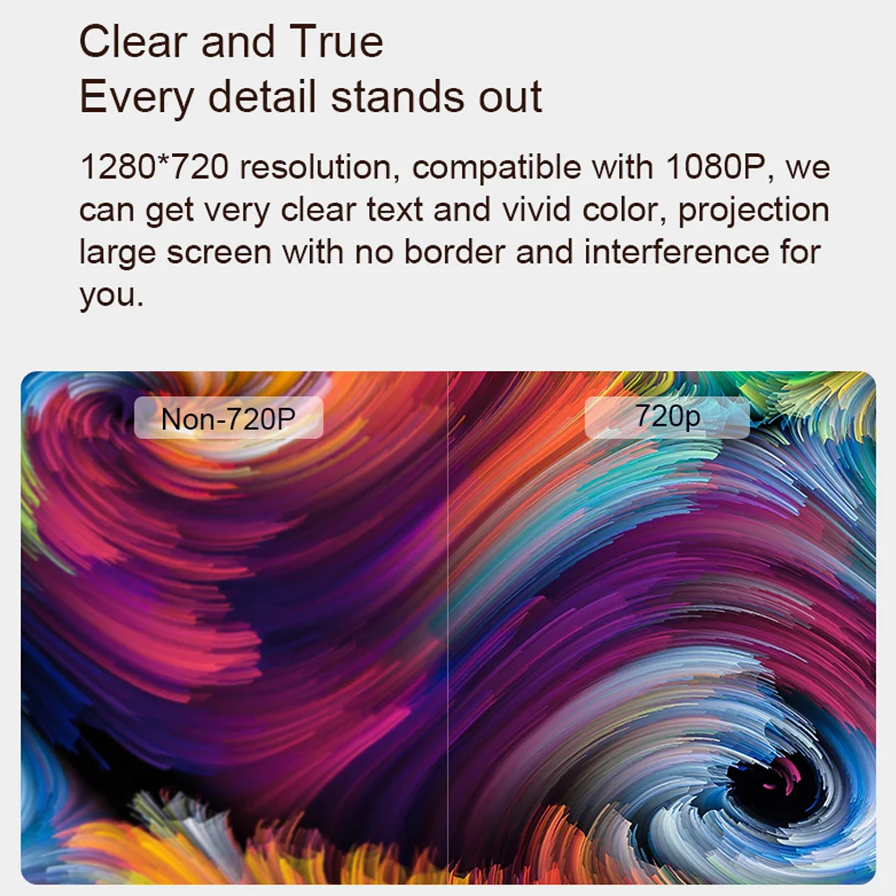 - HD Clear Projection: 1280*720 Physical resolution, support up to 1080P decoding. 120-inch projection screen has no borders.