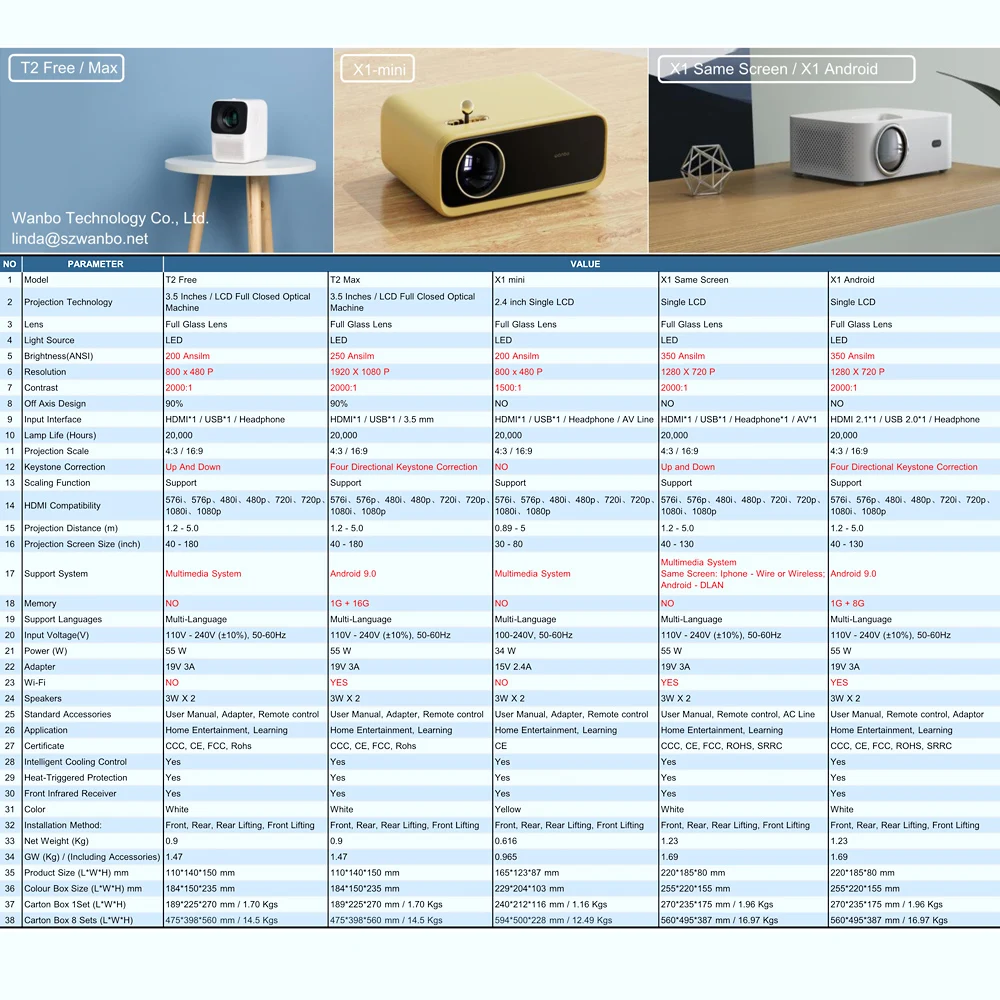 Item name: Wanbo X1 Projector (Android version)