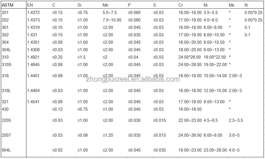 Grade | 200/300/400/Duplex/904L series |