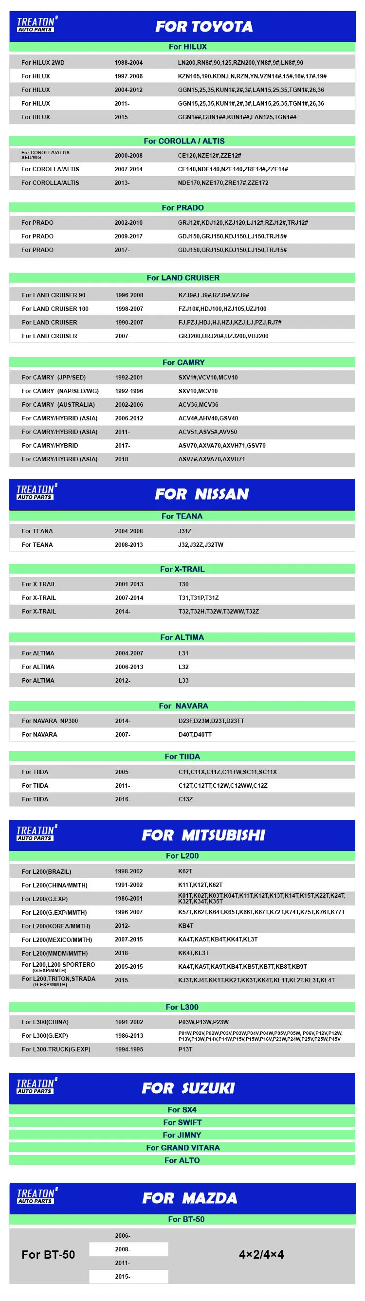 HILUX VIII | 2015- | GUN12# 2.4L 2.8L | |||